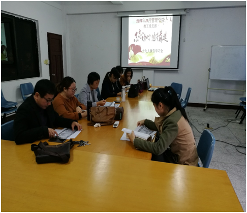 11月27日下午,beat365官方网站教工党支部开展支部活动,学习讨论党的十九大报告,会议由党支部书记李征主持。