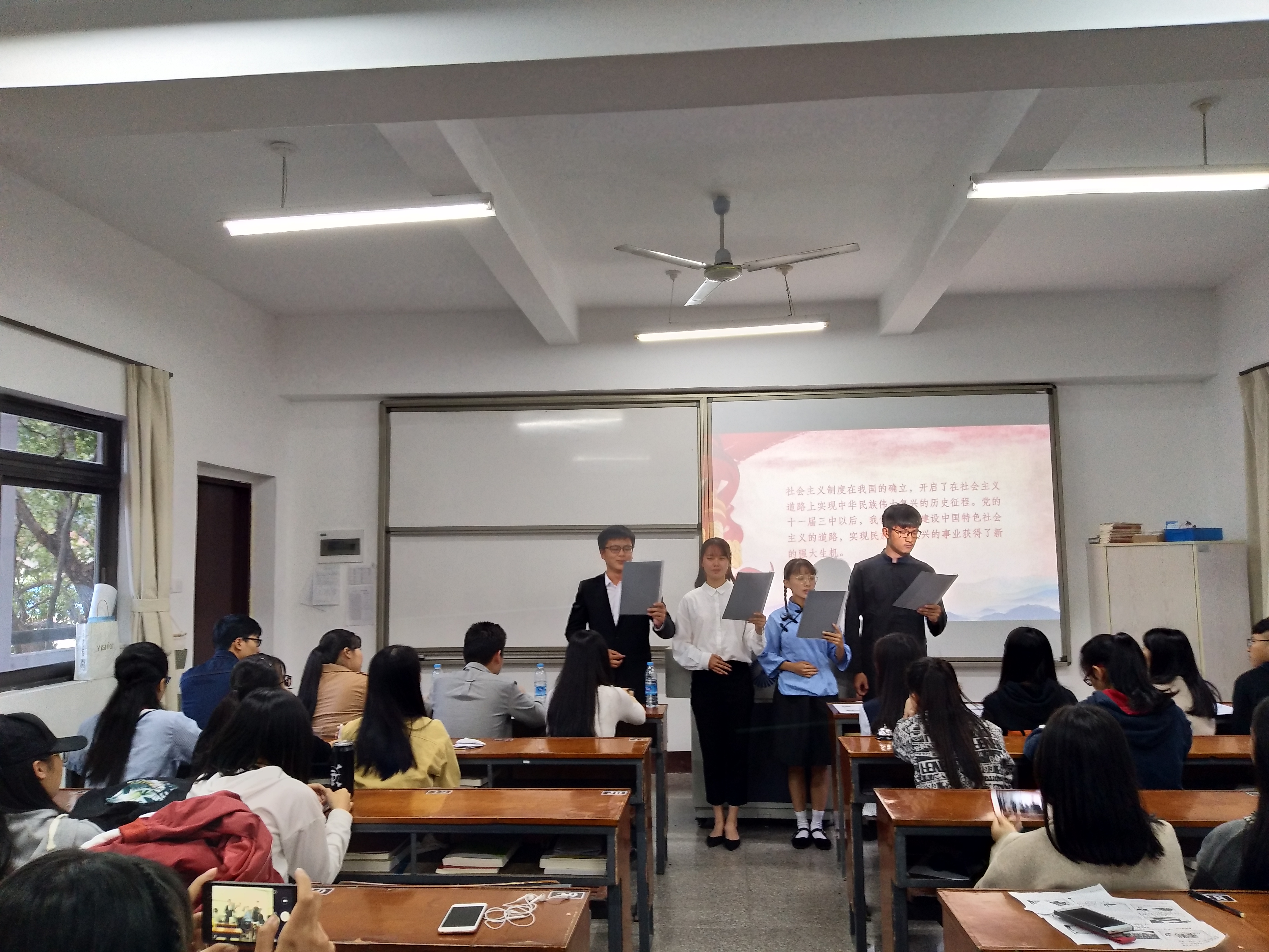 本次团日活动由一院四系共8个班级代表参加,各班级积极组织,通过召开主题班会、装饰十九大主题公交、知识竞赛、户外实践等丰富多彩的形式来回顾党走过的光辉岁月,学习十九大精神,从思想和行动上学习领悟十九大精神。