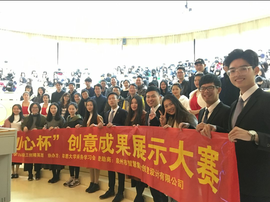 为认真贯彻我校“学会做人,守信笃行。学会做事,创业有成”校训,激发我校学生创新创业热情,营造校园创新创业氛围,1月9日晚,首届beat365官方网站“创心杯”创意成果展示大赛在第一教学区和昌楼致知讲堂顺利举办。beat365院长翁景德、常务副院长兼党总支书记许惠铭以及泉州智慧集合创意设计有限公司林志民先生以及beat365官方网站各院系老师、辅导员和三百多名学生共同出席了本次活动。