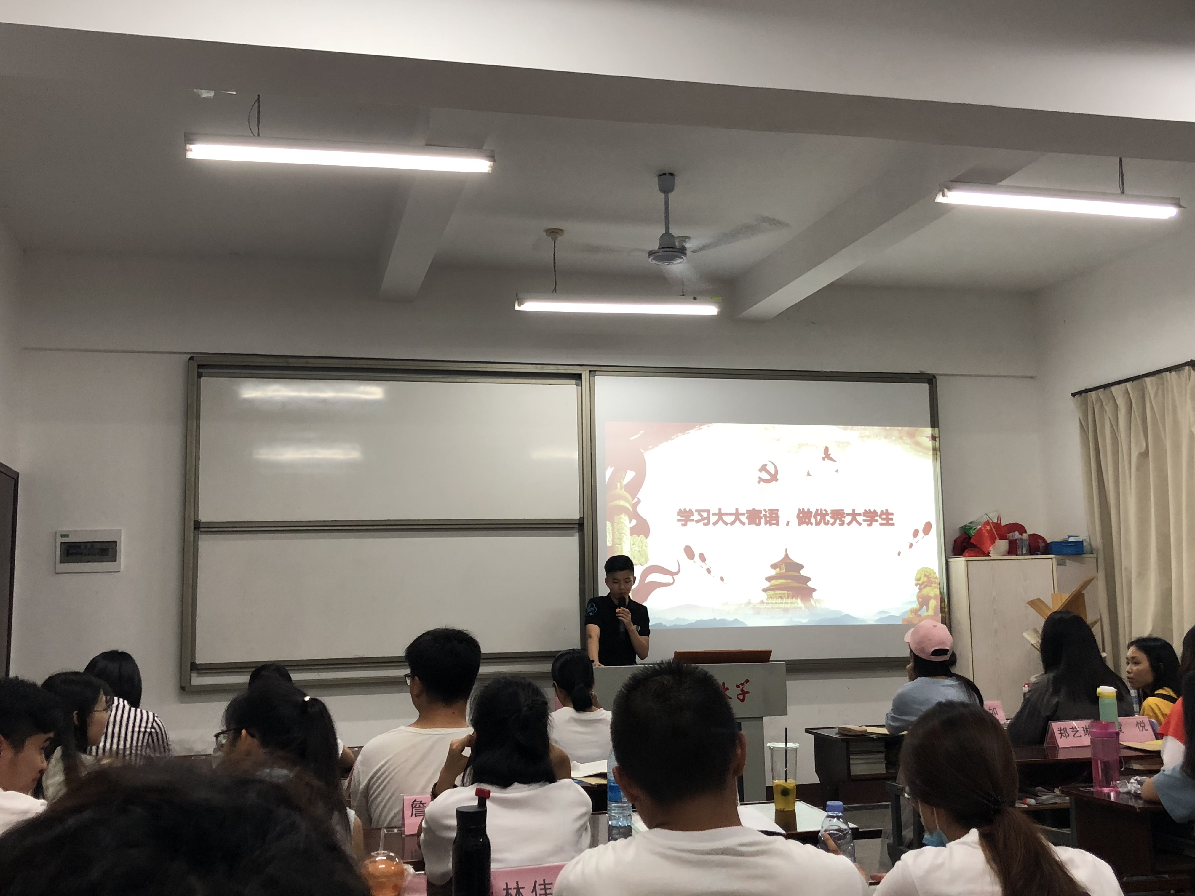 5月21日晚,市场营销系学生党支部于beat365官方网站第一教学区共和楼322、323教室为2017级市场营销专业1、2班的同学们开展以“学习习大大寄语,做优秀大学生”的主题“党课进教室”学习活动。担任此次活动主讲人的是市场营销系学生党支部党员马雪婷、方锐。