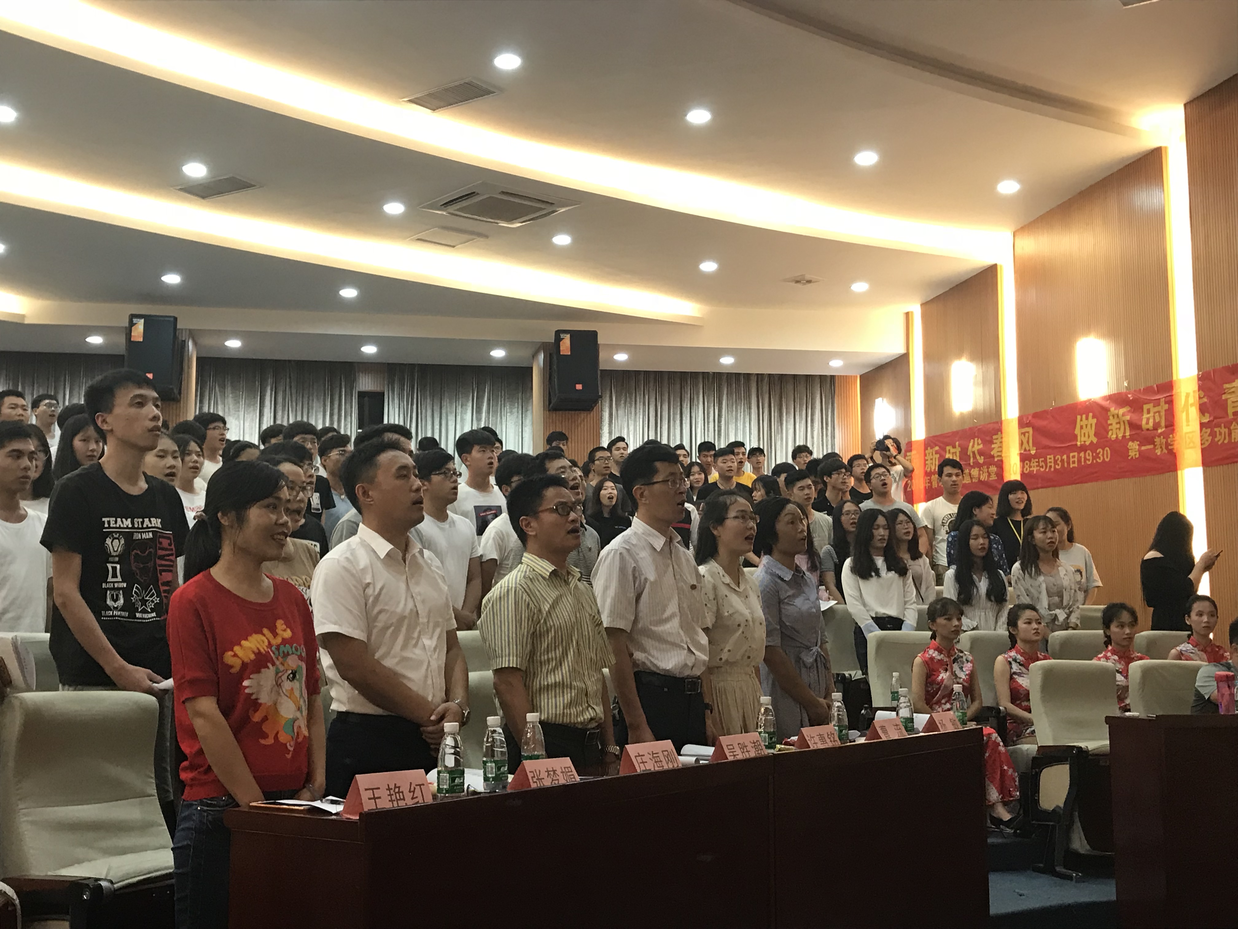 5月31日晚,beat365在第一教学区多功能学术报告厅举办了以“乘新时代春风,做新时代青年”为主题的道德讲堂。校学生事务部主任吴胜潮,beat365党总支书记兼常务副院长许惠铭、副院长庄海刚、工业工程管理与研究院副院长杨敏老师,校心理健康指导中心王艳红老师,校团委副书记曹流老师以及beat365师生代表参加了本次道德讲堂。