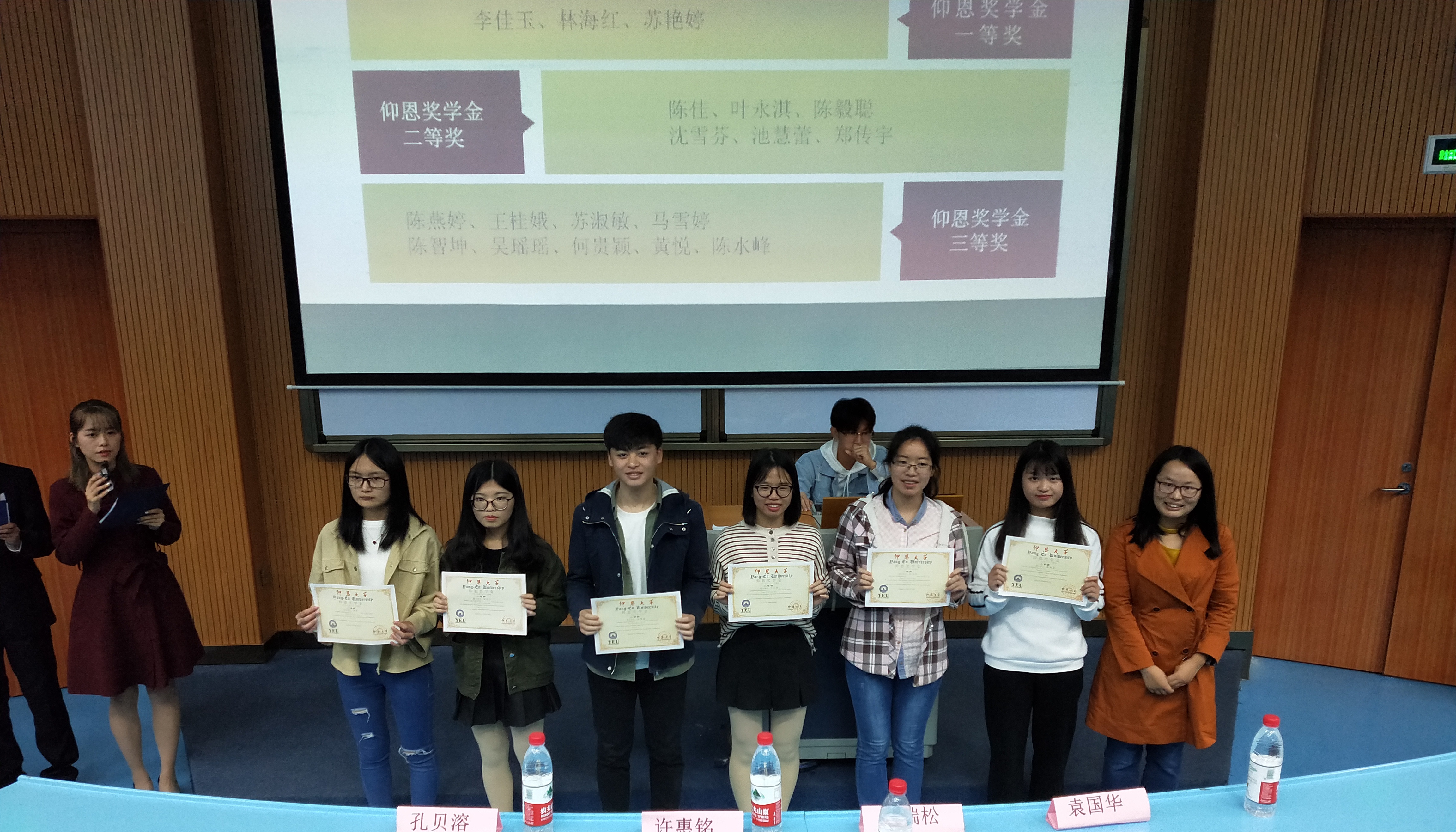 运动会表彰 首先,由系主任李瑞松老师致开场词,宣读大会的基本事项。其次,在送祝福环节中,由高年级学长学姐精心准备礼物,表达对新生的欢迎与温暖。同时,本次大会也对奖学金获得者、三好优干、暑期实践先进个人、运动会先进个人等学生进行颁奖。紧接着,大会进行仰恩一分钟环节,6位优秀的毕业生阐述了心底最深刻的想法;最后,许惠铭老师对本次师生表彰大会作总结讲话,他鼓励新生们积极努力,不断充实自我,本次大会圆满结束。