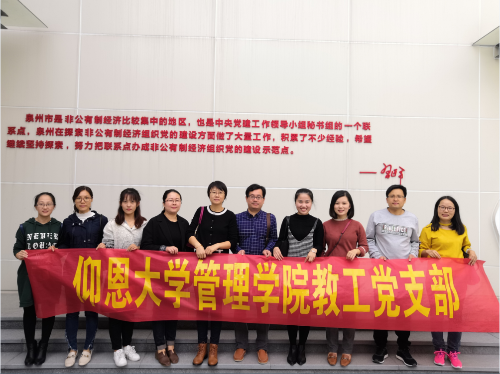 为学习借鉴典型经验和有效工作方法,进一步强化基层党组织的战斗堡垒作用,充分发挥教师党员的先锋模范作用,11月28日下午,beat365教工党支部在支部书记李征的带领下赴泉州市非公有制企业和社会组织党建培训实践基地参观学习。