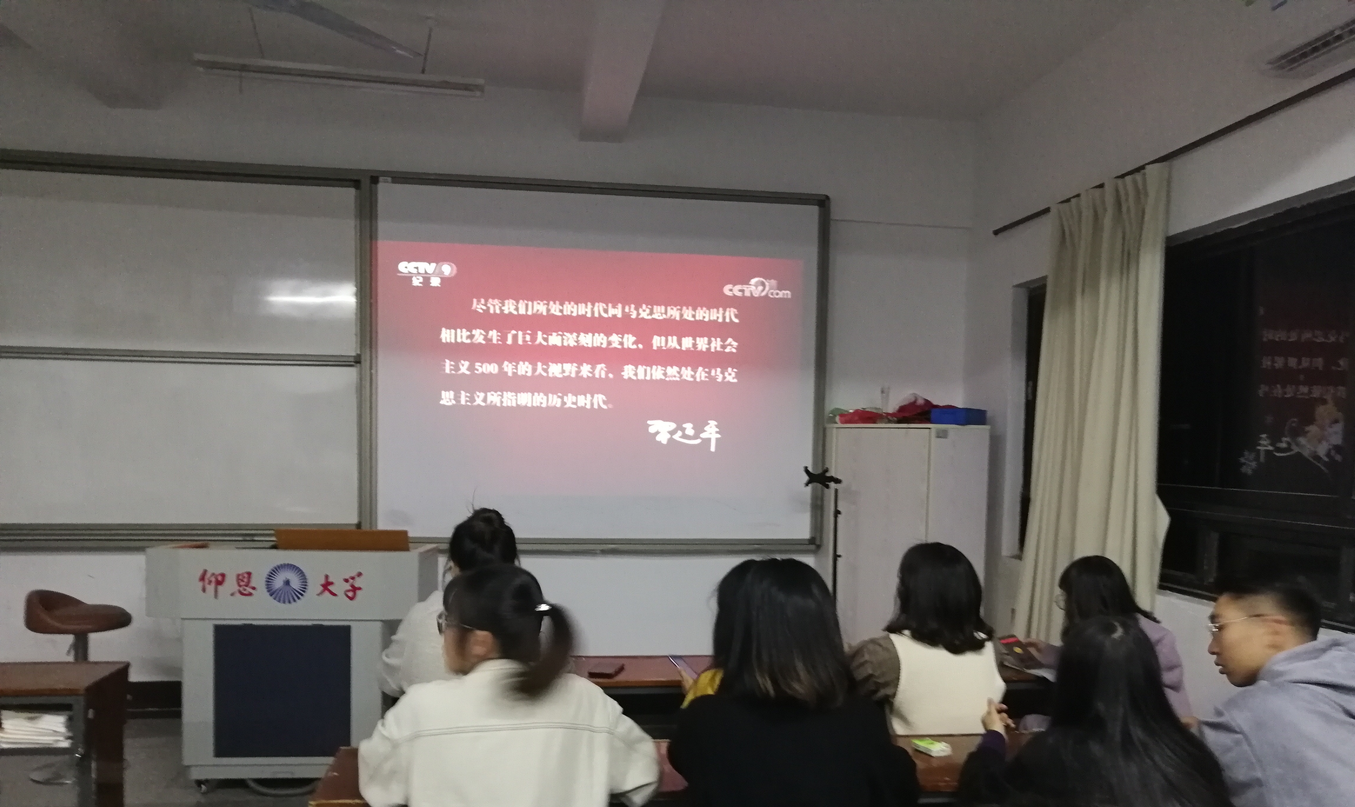 党员们正在观看视频 活动开始,由丁家敏同志为大家放映《不朽的马克思》纪录片,让党员通过纪录片学习“不忘初心牢记使命”的精神,纪录片中的马克思和他的战友们为人类解放事业奋斗终生,矢志不渝躬身理论研究和革命实践的人生画卷,引起党员深刻思考,马克思主义在中国的伟大实践,形象地揭示了马克思主义永葆生机活力的奥秘,是一部经得起历史和实践检验的扛鼎之作。