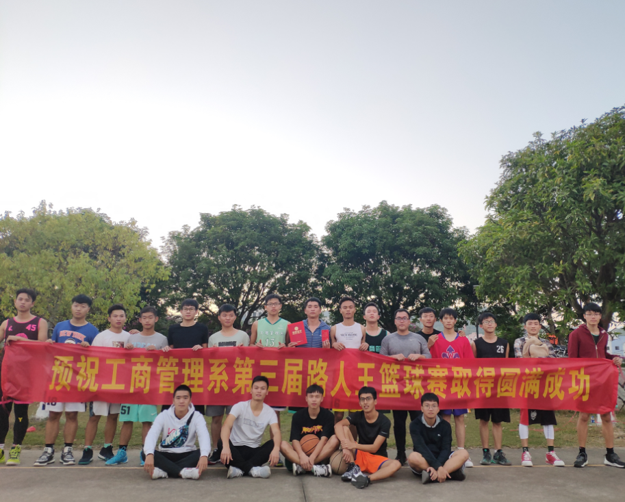 赛后合照 通过举行“路人王”篮球赛,为同学们提供了一个交流学习的平台,增强了同学之间的友谊,不仅展现了工商管理系学子健康向上的青春风采,也为校园体育文化建设增添一道亮丽的风景线。(工商管理系/图文 责任编辑:杜心田)