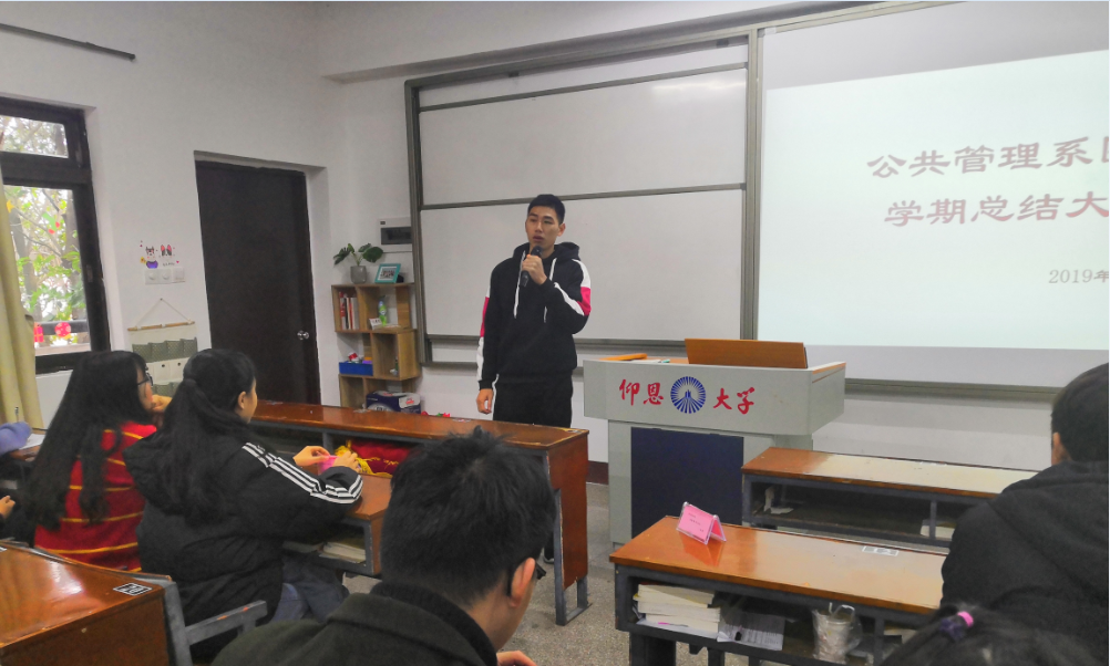 1月4日上午,公共管理系团学组织在第一教学区共和楼320召开本学期总结大会。出席本次大会的有公共管理系辅导员徐鸿飞以及公共管理系全体团学干部。