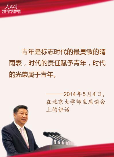 ——《在同各界优秀青年代表座谈时的讲话》(2013年5月4日),《十八大以来重要文献选编》(上),中央文献出版社2014年版,第278页
