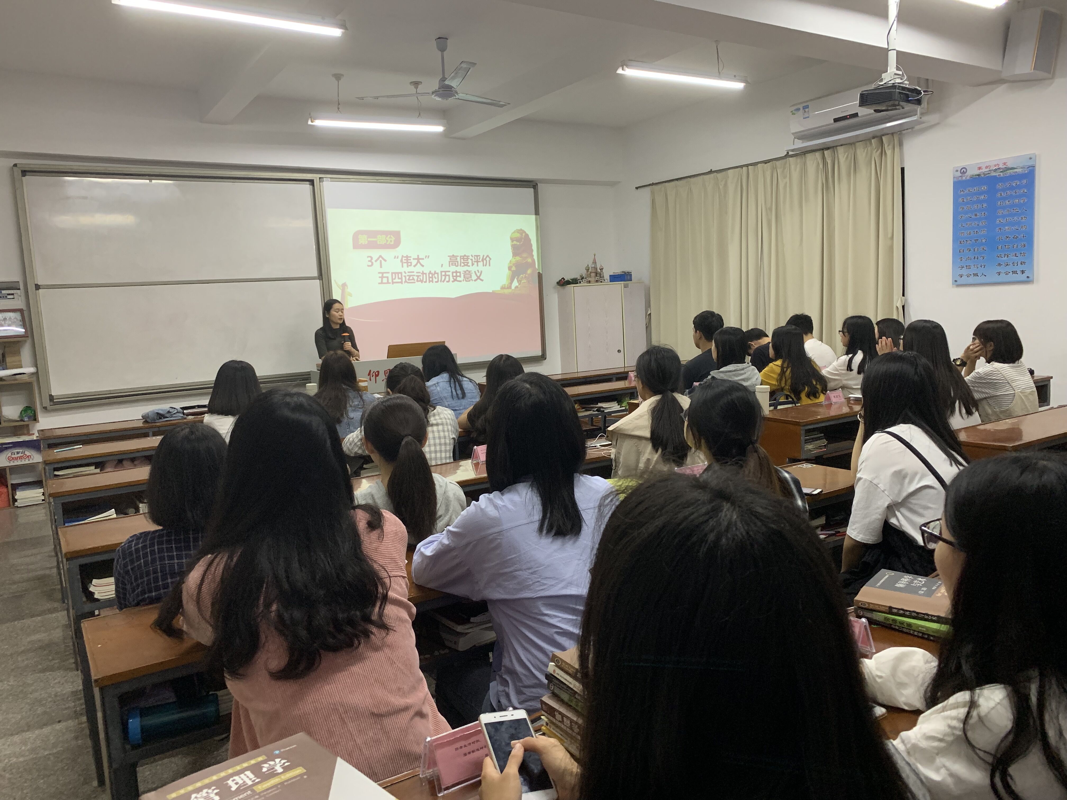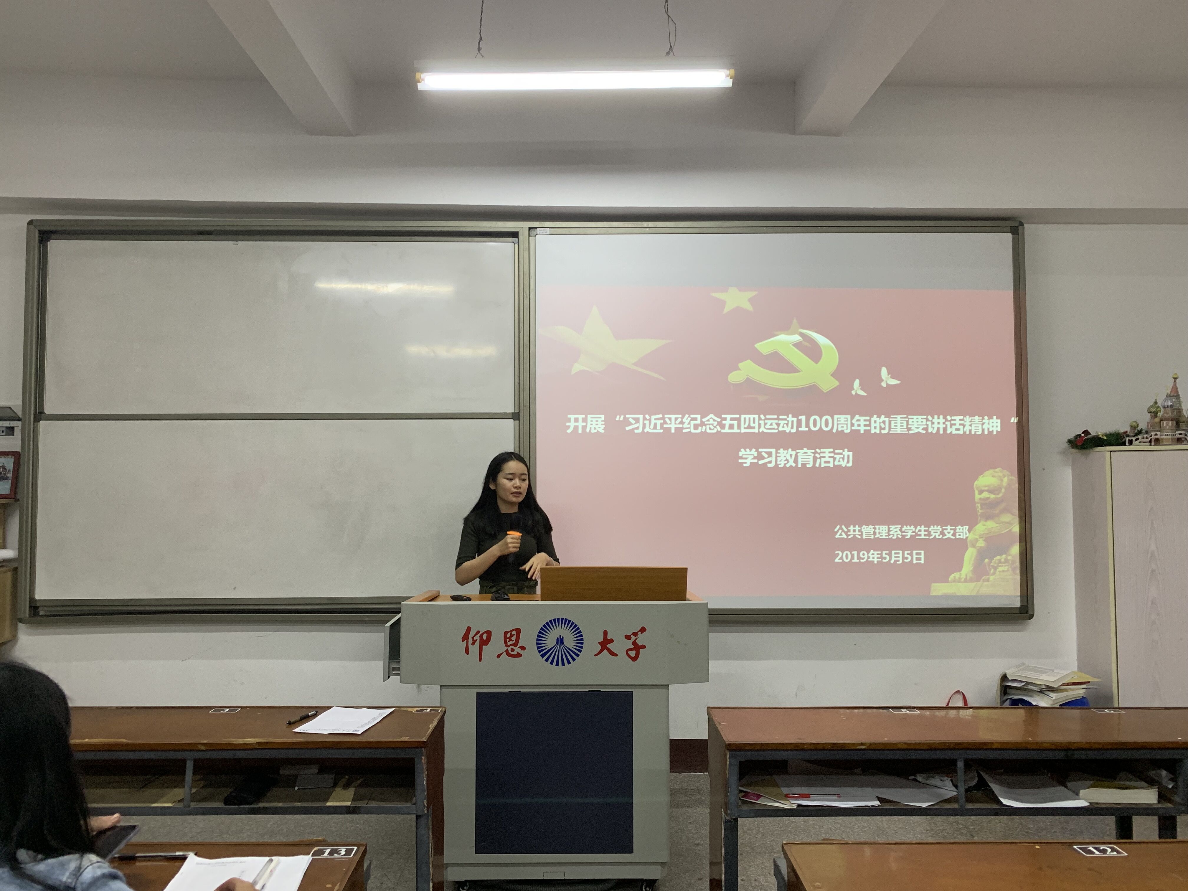 5月5号晚上,公共管理系学生党支部于共和楼320开展“习近平纪念五四运动100周年的重要讲话精神”学习教育活动。该活动由支部成员庄怡馨同志主持,围绕习近平纪念五四运动100周年的重要讲话精神展开,全体成员积极配合,踊跃发言,现场气氛活跃。