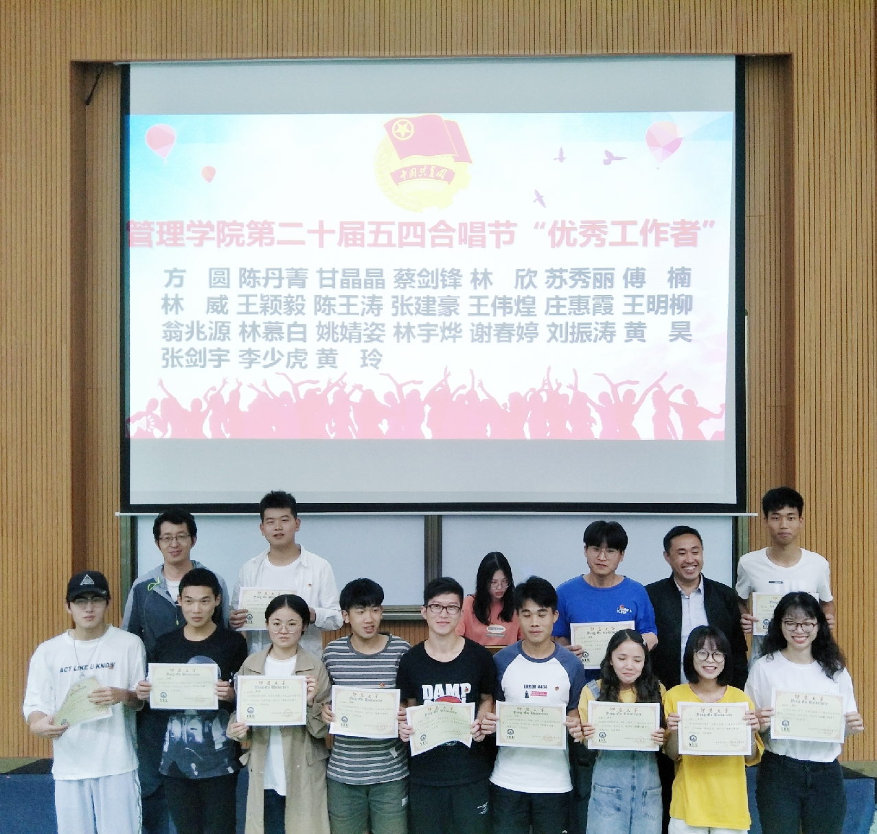 颁奖 大会首先由副院长庄海刚致开场词,后由学院领导、老师为获得“泉州市2018年度五四红旗团支部和优秀共青团员”、“beat365官方网站2018年度五四红旗团委、五四红旗团总支、五四红旗团支部、优秀共青团干部和优秀共青团员”、“beat365官方网站2018年度优秀共青团干部和优秀共青团员”、“第二十届五四合唱节beat365官方网站优秀工作者和优秀个人”等先进集体与个人颁奖。大会现场,掌声不断。