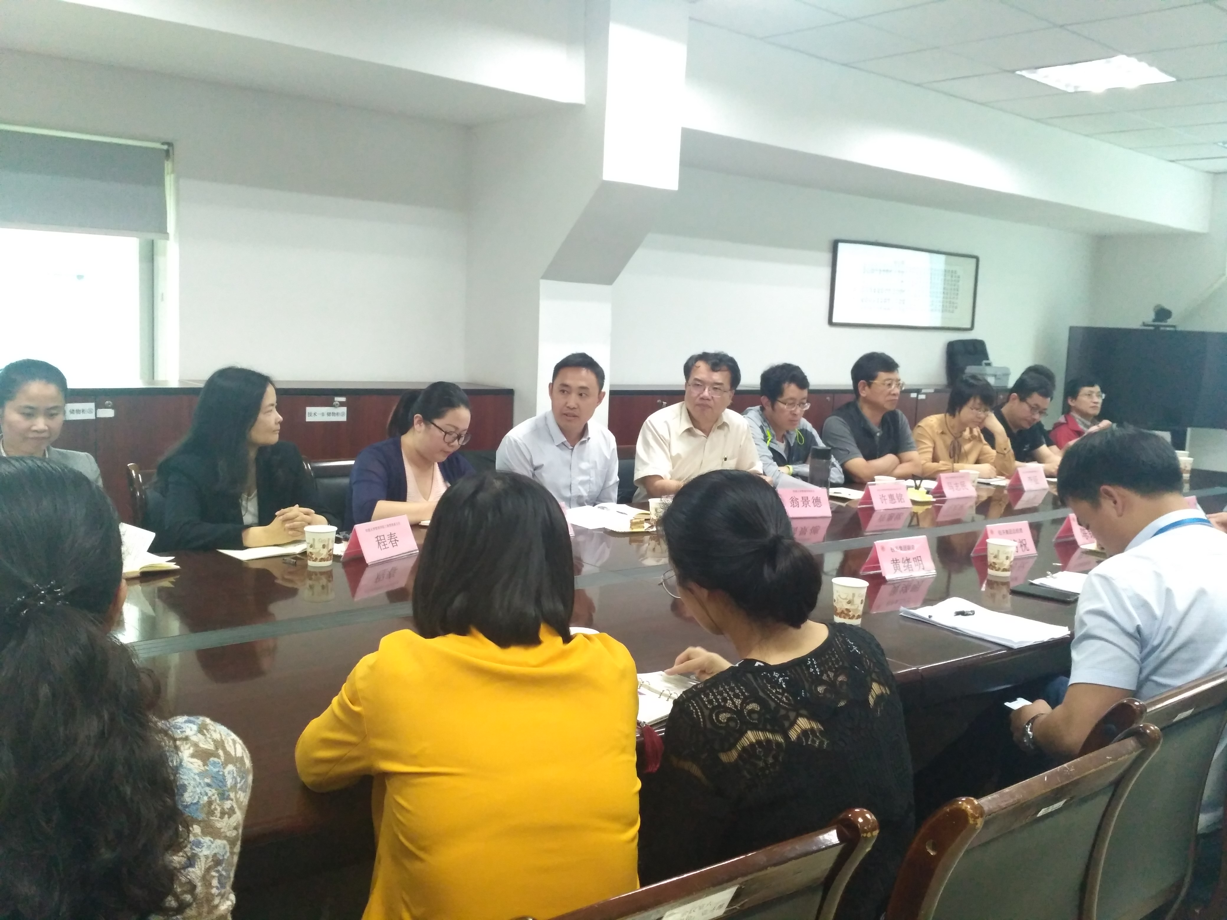 5月22日下午,beat365官方网站院长翁景德、常务副院长许惠铭、副院长庄海刚等三位院领导率领学院全体教师赴福建和诚鞋业有限公司参访并就加强校企深度合作的相关事宜进行洽谈。