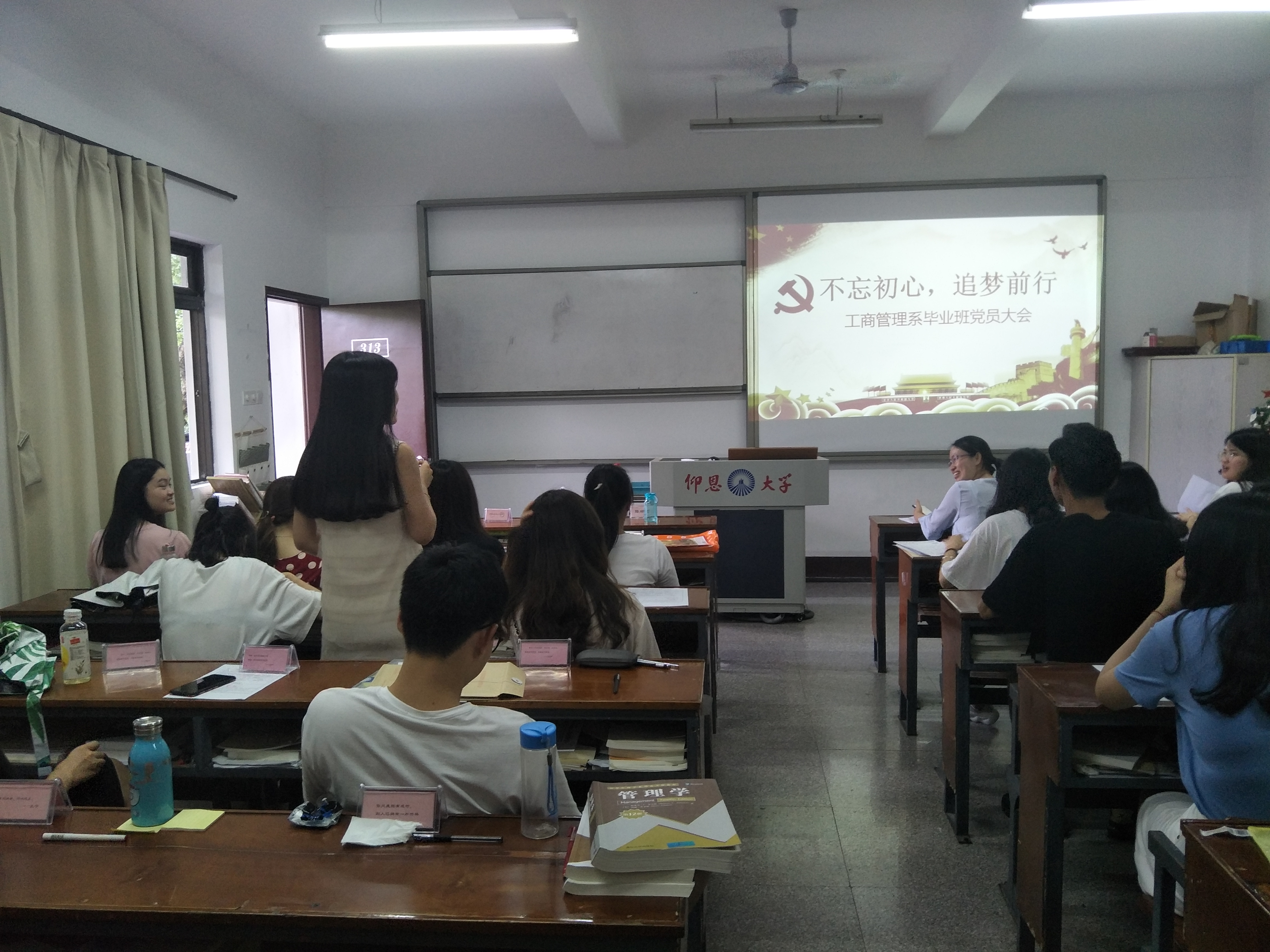 6月19日下午,工商管理系学生党支部于共和楼313开展关于2015级毕业班党员交流大会。本次大会由支部书记蔡惠丽主持,工商管理系学生党支部全体党员出席。