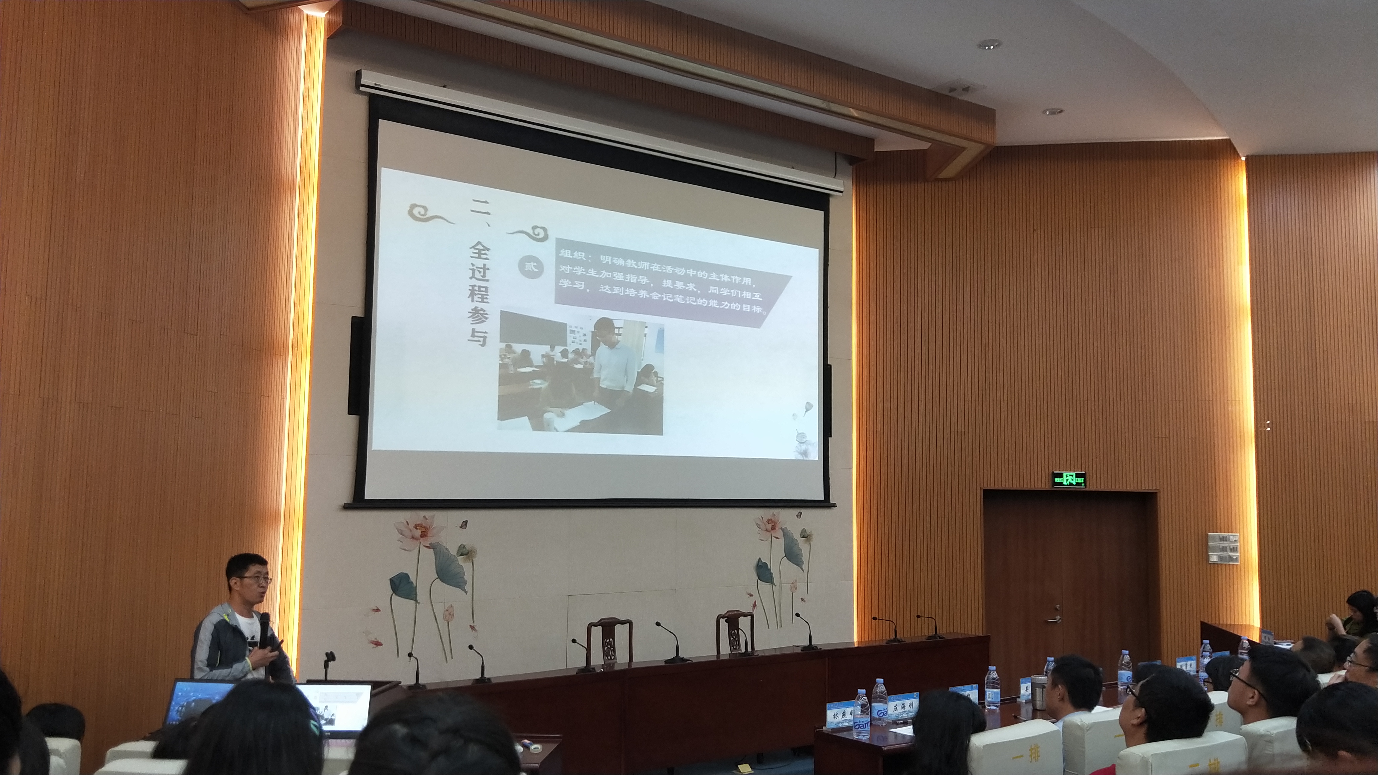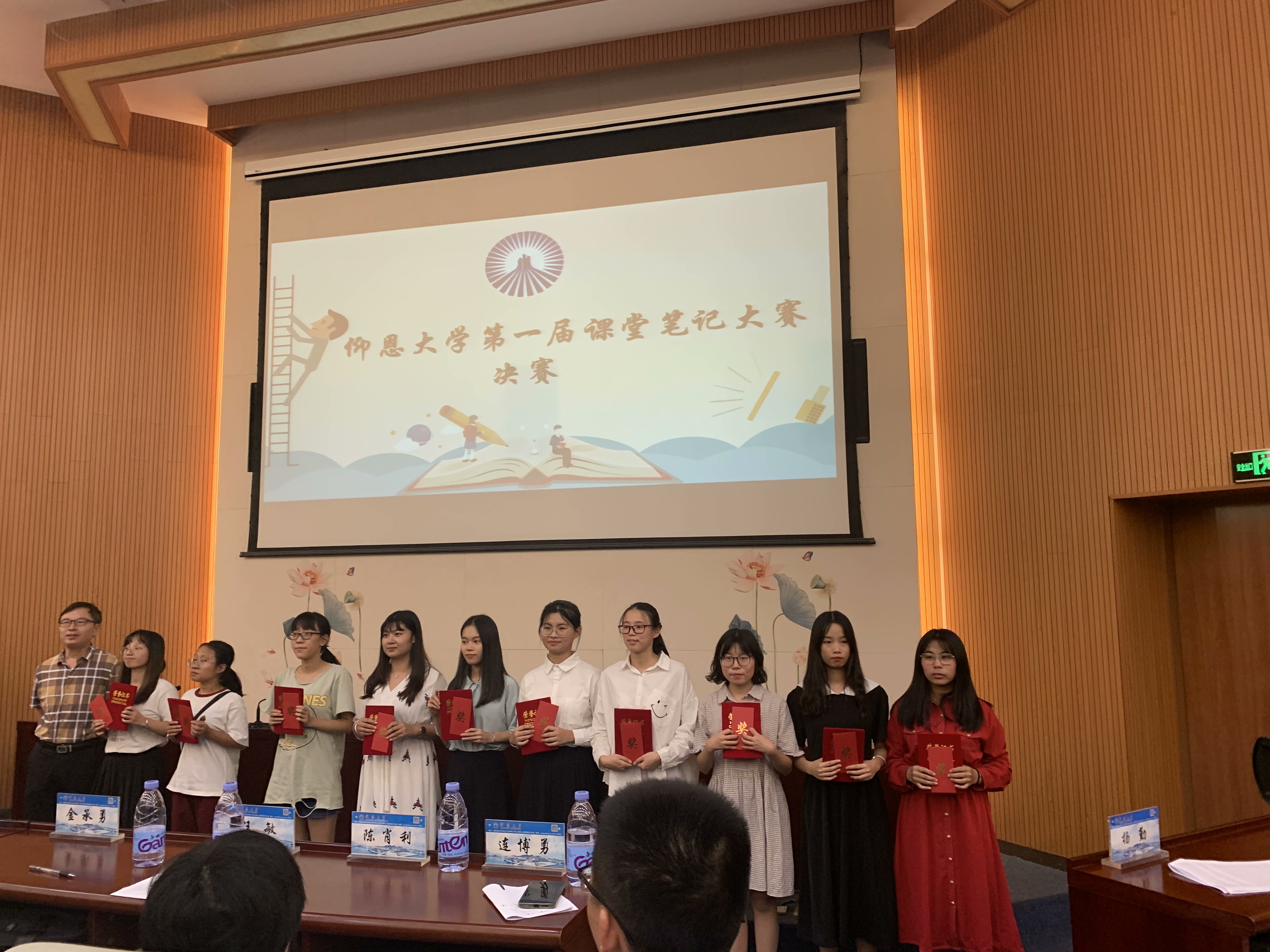 为引导学生做好课堂笔记,促使养成良好的学习习惯,提高学习兴趣,增强学习能力,形成“亮笔记、促教风、树学风”的良好氛围,促进良好教风、学风建设,9月25日下午,我校第一届课堂笔记大赛决赛在第一教学区多功能报告厅举行,校党委副书记程如平,副校长许总,教务部主任郑兆领,校团委书记杨勤,各学院党总支书记、分管教学副院长、团委书记等观看比赛。