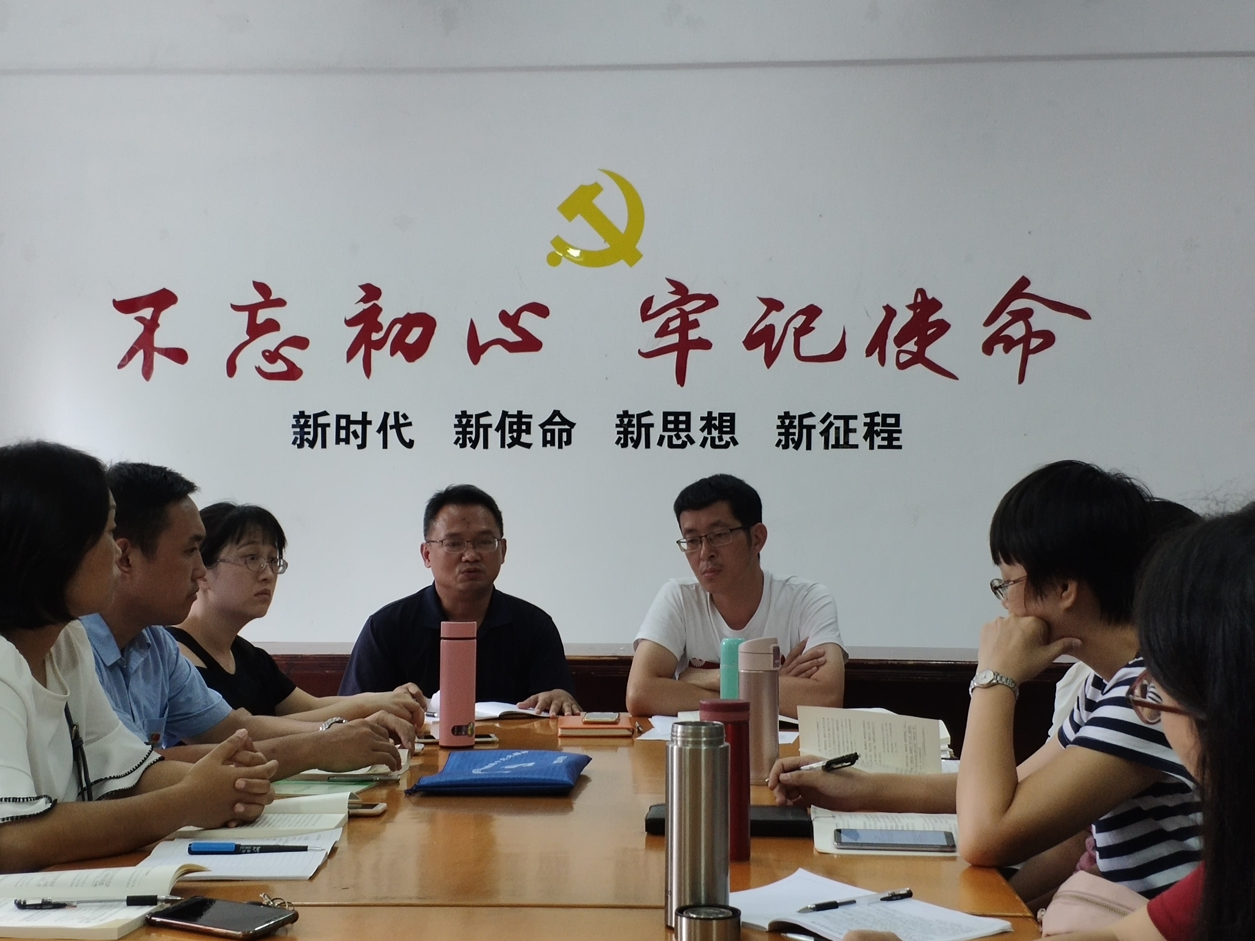 10月9日下午,beat365党总支在第一教学区曼谷楼202beat365官方网站党建工作室召开党总支理论学习中心组扩大会议,开展“不忘初心、牢记使命”主题教育第一次专题集中学习研讨。学校“不忘初心、牢记使命”主题教育领导小组成员、校党委委员叶钦南到会指导。beat365官方网站党总支书记兼常务副院长许惠铭主持专题学习并发言。beat365官方网站党总支支委、各基层党支部书记以及全体教师党员参加会议。
