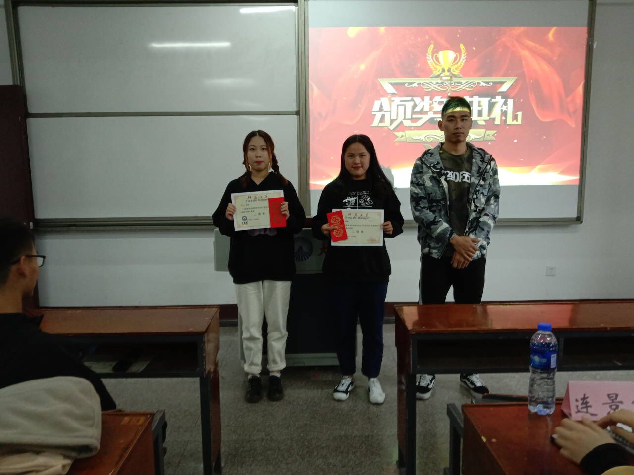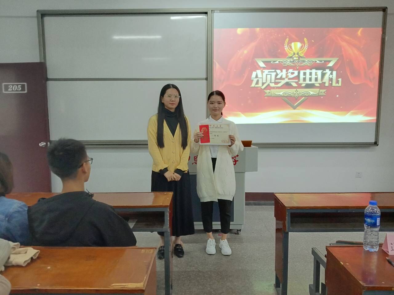 颁奖环节 比赛自12月2日启动以来,共历时16天,通过线下评委老师打分及线上投票,最终,张雪文、黄永祺荣获一等奖,郑彦宏、黄乐乐荣获二等奖,陈彦全、林心婷、傅峥晶荣获三等奖,郑彦宏荣获人气奖。活动现场,beat3652019年国家奖学金获得者肖燕华分享了自己的大学经历,她号召学弟学妹们确定目标,不断向目标前进,成为自己想成为的人。最后,连景霞老师从“努力、自强、感恩”三个方面进行总结,教诲学生努力奋斗,学会感恩。