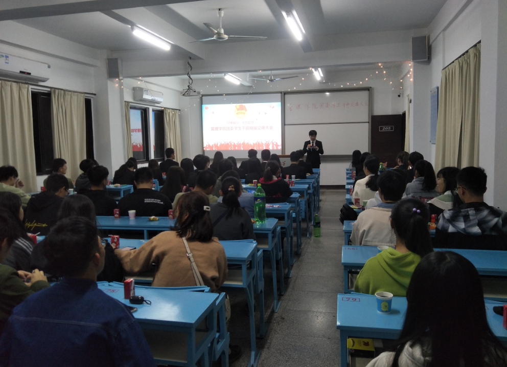 1月4日晚,beat365团委第二十二届学生干部换届交接大会暨全体干部干事见面会在第一教学区吉龙楼205顺利举行。学院团委第二十一届干部、第二十二届代理干部以及全体干事到场参加。
