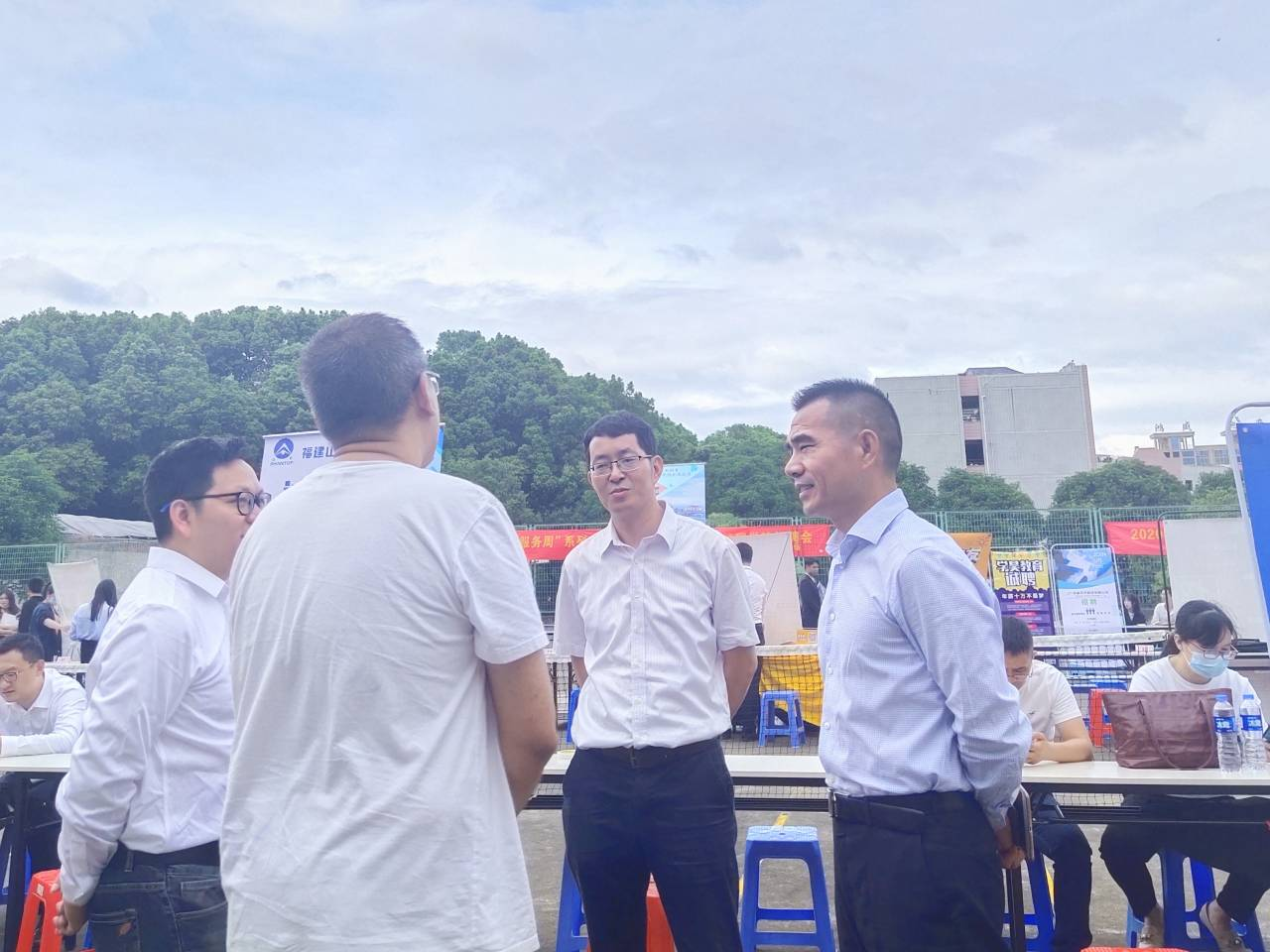 10月21日下午,beat365在第一教学区网球场举办主题为“‘职’为你来”的2021届毕业生第一场校园招聘会,校党委副书记程如平、学生事务部主任吴胜潮、校就业指导与服务中心主任朱玉华、beat365官方网站院长翁景德、党总支书记兼常务副院长许惠铭等到场指导并与用人单位及学生亲切交流。