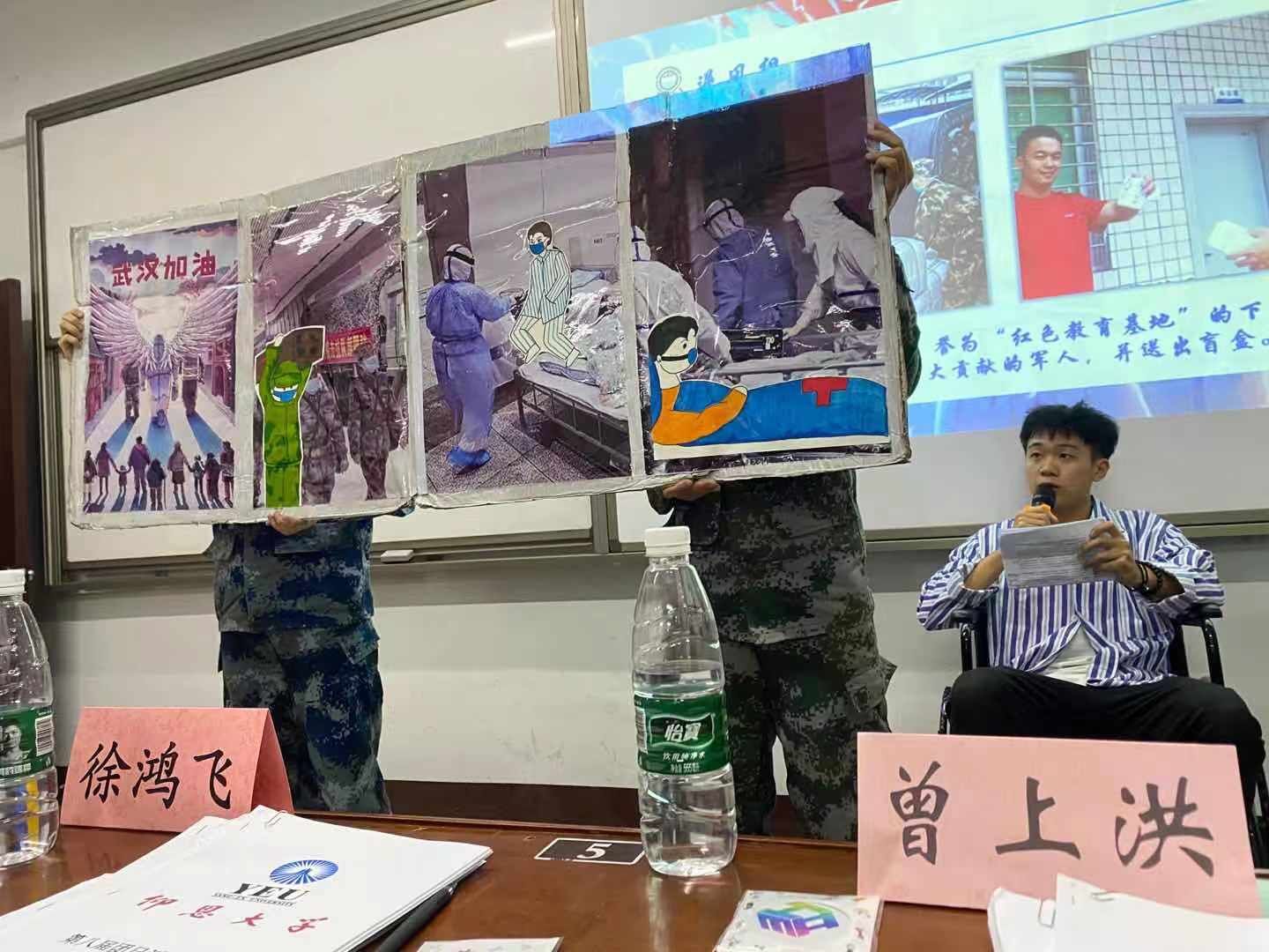 活动现场 本次团日活动共有11个团支部晋级院赛,各班团支部围绕本次团日主题开展班级团日活动,通过PPT汇报、现场表演等形式展现各班风采。在比赛现场,2020级市场营销2班团支部展示了由同学们亲手制作的盲盒,用惊喜和祝福表现抗疫的决心;2020级市场营销1班团支部展示了油纸伞、纸雕一类的艺术品,弘扬传统文化,展现中国风采;2020级人力资源管理1班团支部用木偶戏来表达“抗击疫情,人人有责”。在比赛过程中,各班团支部精彩的演讲和汇报赢得现场观众阵阵热烈的掌声。