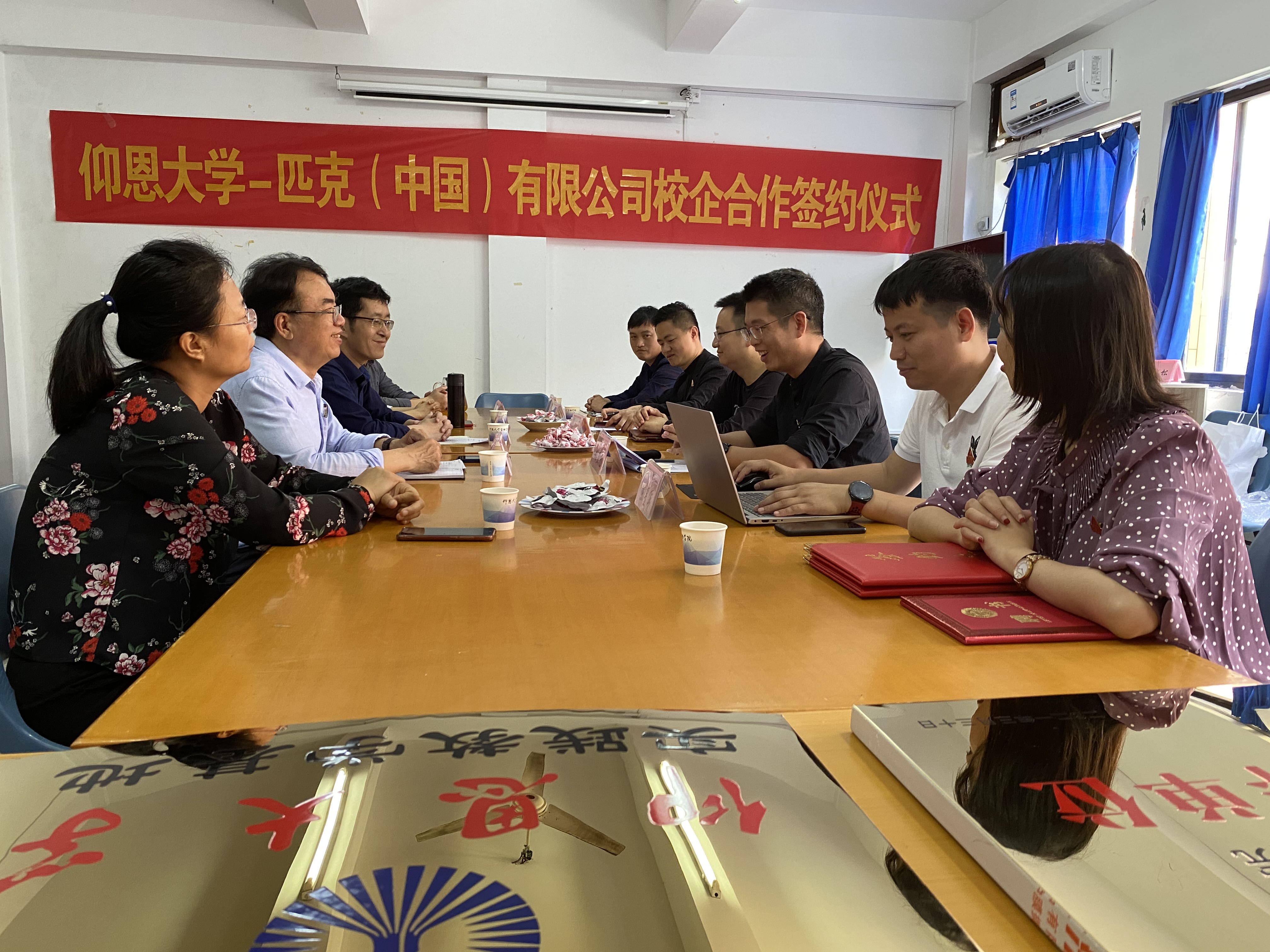 合照 匹克集团代表胡燕艺简要介绍了匹克有限公司的发展历程及产学研未来规划,并表示希望与beat365官方网站合作为契机,进一步促进公司产业基础升级和人才结构调整。同时他特别提到对beat365官方网站有独特的情怀,他希望,通过与beat365官方网站的校企合作,渴望更多优秀的仰恩学子加盟“匹克”的事业,开创匹克更广阔的天地。匹克公司将本着“走集团化道路,创国际、为民族工业争光”的方向,发扬“团结、求实、高效、创牌”的匹克精神,创造更辉煌的明天。