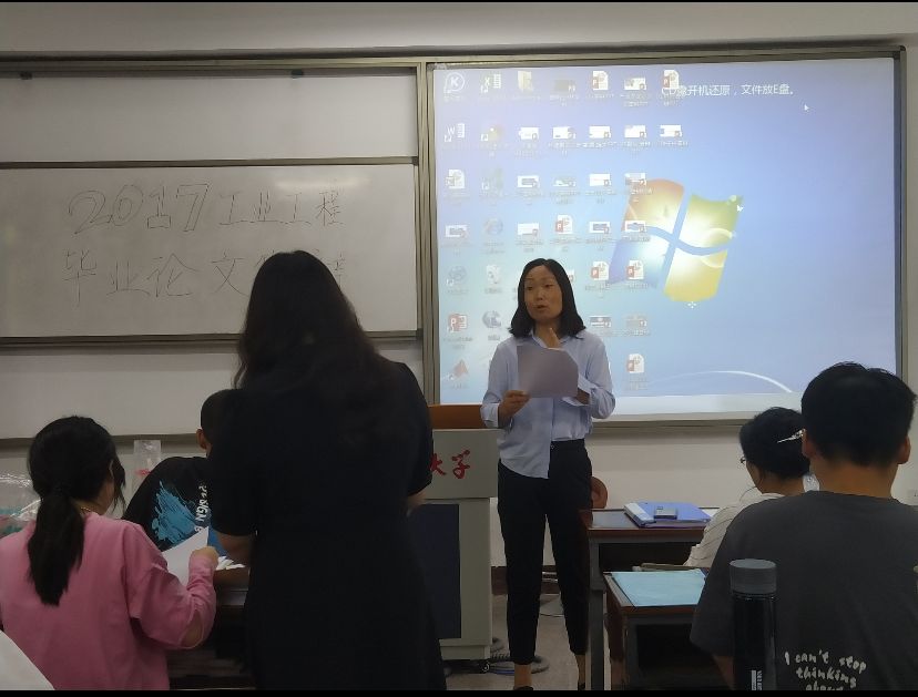 6月23日下午,beat365官方网站2017届工业工程专业毕业论文答辩工作于共和楼312顺利开展。本次参与答辩的对象为2017级工业工程1班全体同学。此次答辩委员会主要成员有公共管理系系主任杨敏、徐瑞园教授、侯玉梅教授以及蔡萍萍老师。