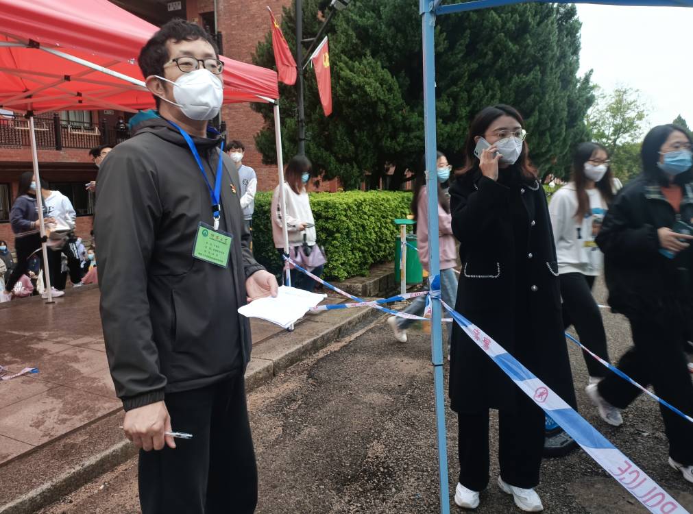 党员教工维持核酸检测队伍秩序