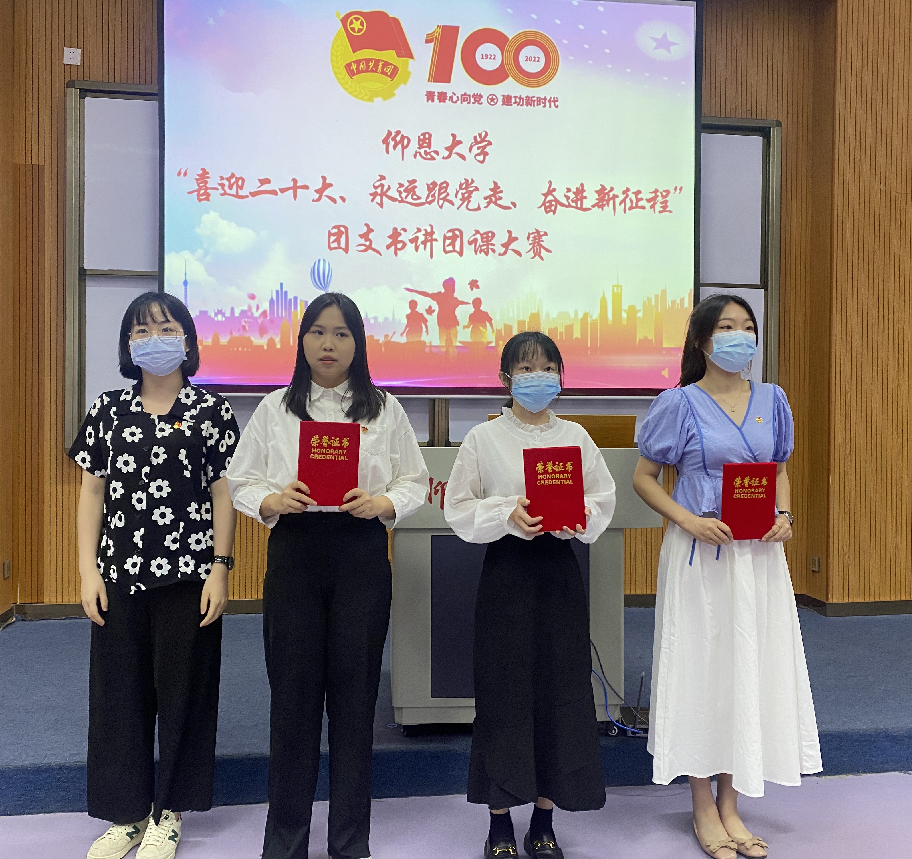 颁奖照片 团旗引领成长,红色点亮青春。此次活动令我们以更加饱满的热情迎接党的二十大胜利召开和庆祝中国共青团成立100周年,让我们追随光、靠近光、成为光。
