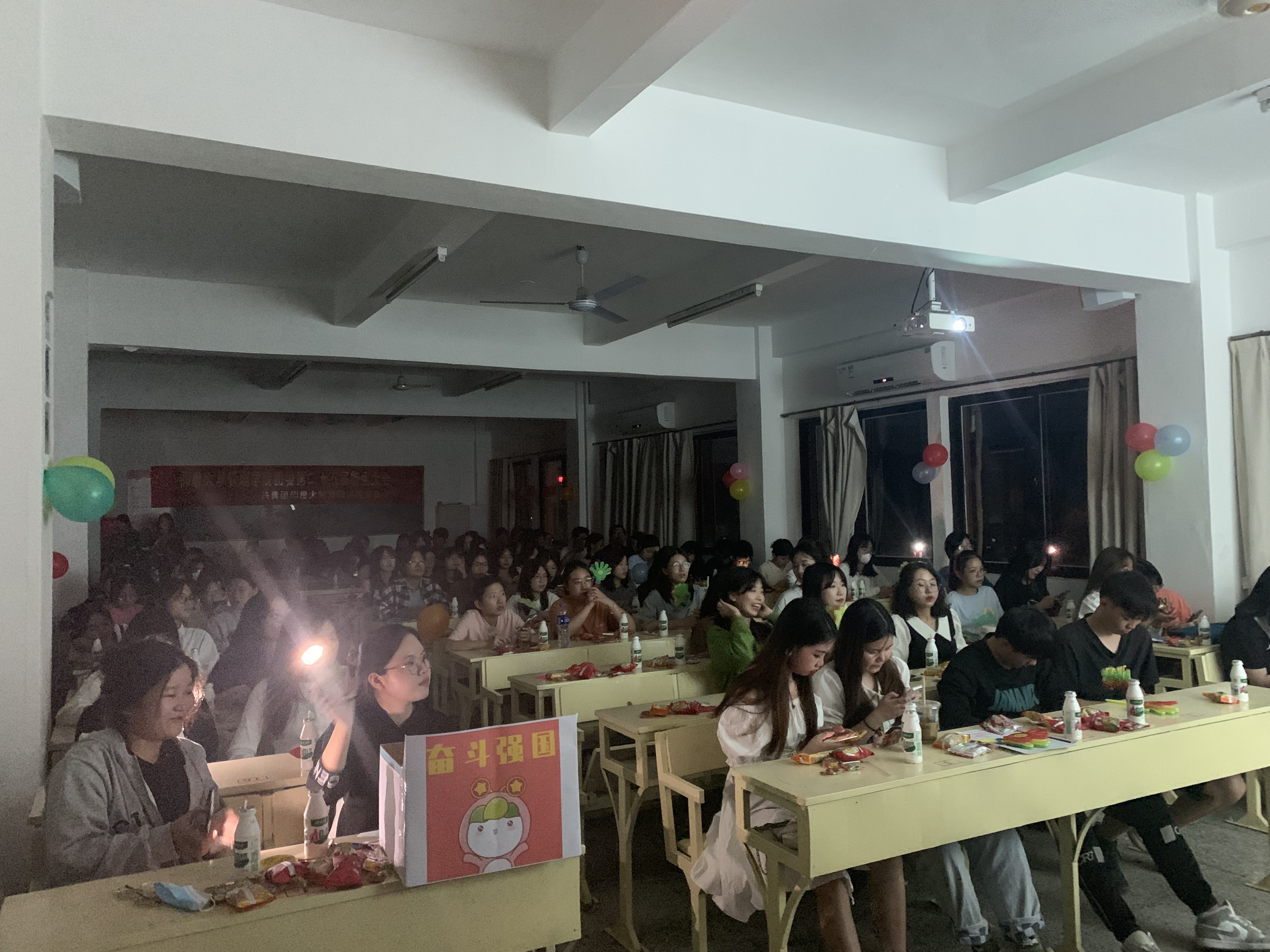 新生大会现场 管院团委各个部门的部长依次上台介绍各自部门的基本情况和主要工作内容。在各部长的解说下,让新干对管院团委这个大家庭有了更深入的了解,同时也让新干对管院团委的生活充满了向往和期待。还有部门精心准备的节目表演,内容包括歌曲,舞蹈等,节目中间还穿插着击鼓传花,我有你没有等小游戏。最后在各部门干部合唱的星辰大海中,本次新生大会完美落幕。