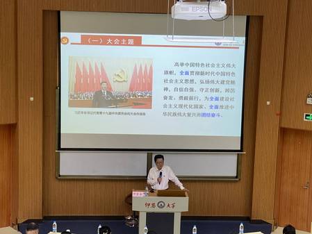 何宏舟从大会主题、报告框架和报告核心要义三个方面全面解读了党的二十大报告,又从“以人民为中心”、“团结”、“斗争”三个关键词对二十大报告进行了深入重点解读。他指出党的二十大是在全党全国各族人民迈上全面建设社会主义现代化国家新征程、向第二个百年奋斗目标进军的关键时刻召开的一次十分重要的大会,要牢牢把握新时代中国特色社会主义思想的世界观和方法论,以中国式现代化推进中华民族伟大复兴的使命任务。