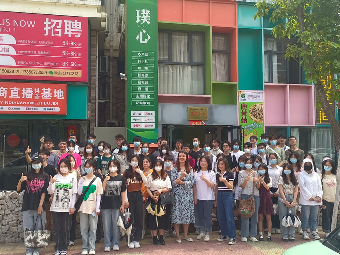 在参访调研的第一站,“璞心”云想星创空间有限公司创始人、beat365官方网站优秀校友蔡喃喃总经理热情地接待了大家。座谈会上,蔡总介绍了公司概况、发展历程与未来展望,真诚地分享了自己的创业经验,并希望学弟学妹们通过本次走访,了解互联网众创模式,不断拓展视野,汲取新知识,为进入职业生涯做好充分的准备。随后,在公司各部门经理的分批带领下,同学们逐次参观市场策划部、直播摄影部和仓储中心等部门,了解了拍摄场景的设备和布置技巧、直播电商发展现状和市场前景等。整个参观过程气氛活跃,同学们都印象深刻、受益匪浅。