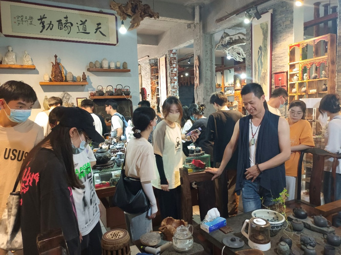 随后,在惠安石雕传承人、工艺美术协会会长吴培霖的带领下,beat365官方网站市场营销系的老师和学生们来到参访的第二站——中国雕艺城,一个集展示、销售、体验、培训为一体的综合性文化园区。园区内有八个展厅,分别展示了石雕、影雕、根雕和木雕等不同类型的工艺品。吴会长用心地讲解了不同工艺品的制作技术、设计理念、市场定位和销售策略,并与老师和学生们进行了互动交流。在现场,大家亲眼见证了惠安石雕从原材料到成品的全过程,看到了一些正在进行或已经完成的石雕作品,有些是用于建筑装饰的构件,有些是用于宗教供奉的佛像,有些是用于收藏赏玩的艺术品。吴会长还邀请了几位学生亲自动手体验在不同材质上雕刻的乐趣。大家对惠安石雕的精湛技艺和丰富内涵赞叹不已,纷纷拿出手机拍照留念。