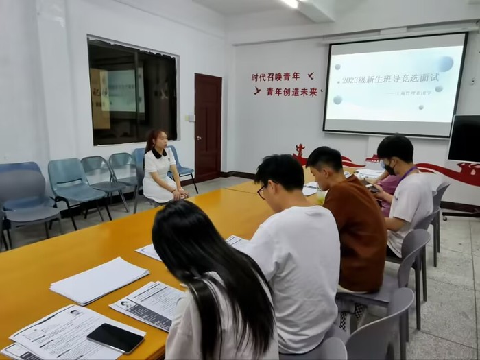 为顺利有效地开展2023级新生的思想教育、服务管理、学习和生活指导工作,让新生们更快地适应大学生活,熟悉校园的规章制度,6月13日晚上,工商管理系于曼谷楼206室开展2023级新生班导面试。