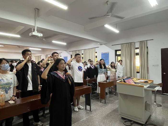 会议开始温晓霞同志带领同志们重温入党誓词,铿锵恢宏的誓词,提醒着在场每一位党员肩负的神圣使命和责任强化党员意识。紧接着,进行聘书颁发仪式,由支部书记连景霞老师为支部副书记温晓霞同志组织委员兰燕菲同志和宣传委员吴昭英同志颁发聘书并合影留念。活动中每一位毕业班党员分享在党支部印象最深刻的事一次次党建活动的经历收获、疫情时期的“我是党员我先上”感悟体会、入党启蒙的经历,呼吁大家珍惜在校时光,珍惜党员身份,不忘初心坚定信念,继续书写市销支部的时代华章!活动尾声,在校生党员为毕业班党员送上市场营销系学生党支部准备的政治贺卡、diy印章等纪念礼物。伴随着现场滔滔不绝的掌声,在校生党员们拉起横幅齐声合唱歌曲《凤凰花开的路口》,为毕业生党员们送上最美好的祝福。