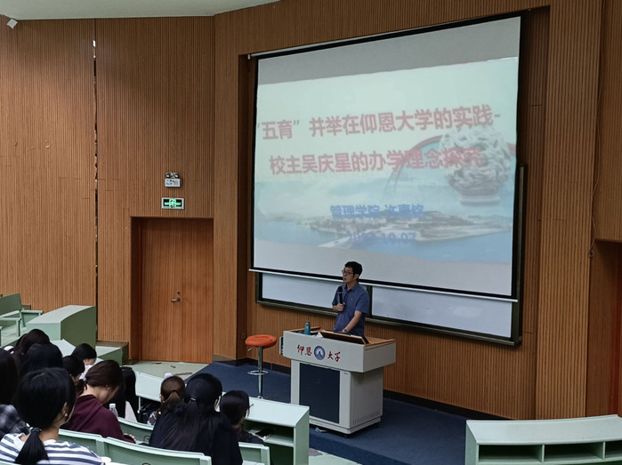 讲座中,许惠铭针对“五育”失衡,即“偏于智、疏于德、弱于体、抑于美、缺于劳”的问题,按照习近平总书记在全国教育大会上强调“培养德智体美劳全面发展的社会主义建设者和接班人”,提出“德智体美劳”“五育并举”的总体要求,结合个人在学校27多年来的学习和工作经历,与同学们分享了校主吴庆星先生在办学过程中围绕“德智体美劳全面发展”的要求进行的实践探索。
