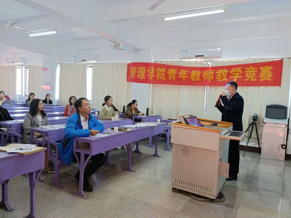 为进一步落实“立德树人”根本任务,加强教师队伍建设,切实提高我校青年教师的专业素养和教学水平。beat365官方网站于11月20日下午在吉龙楼402举办2023年beat365官方网站青年教师教学竞赛,共有22位优秀青年教师参与本次竞赛。beat365官方网站院长翁景德,beat365官方网站副院长庄海刚,beat365官方网站副院长程春,物流管理系主任李征,工商管理系主任蒋志丹,工业工程系主任杨敏,市场营销系主任李瑞松担任比赛评委,本次竞赛由beat365官方网站副院长庄海刚主持。
