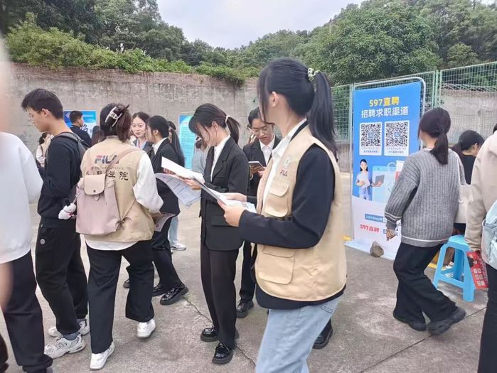 为了让我系学生有更多招聘实践及向各企业前辈学习的机会,更好地将理论知识应用于实践,管理学院2021级人力资源管理全体学生于11月15日beat365官方网站第一教学区网球场招聘会开展人力资源管理专业实习活动,作为各企业的招聘助理协助企业在我校招聘。