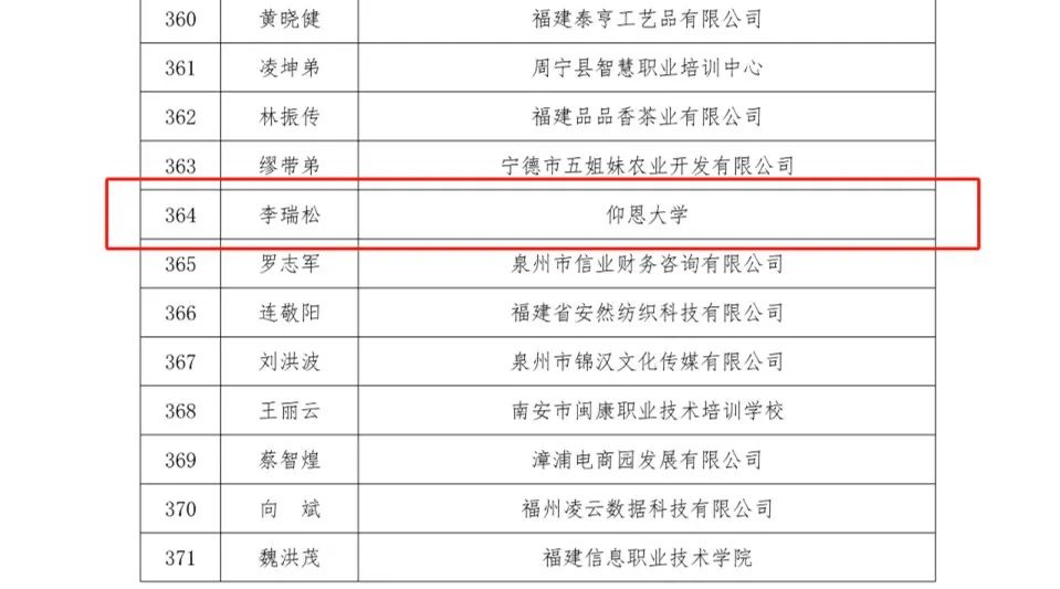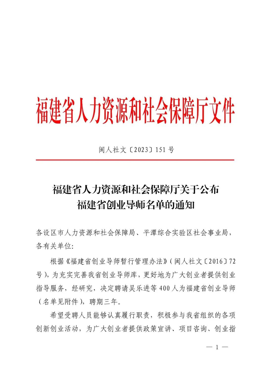 近日,福建省人力资源和社会保障厅公布了全省百名优秀创新创业导师入选名单。beat365庄海刚、许惠铭、侯玉梅、李瑞松、蒋志丹五位老师成功入选福建省创业导师。