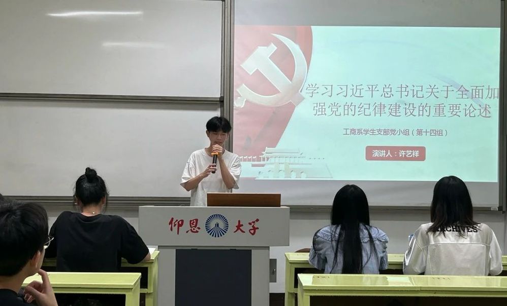 6月25日晚,工商管理系学生党支部于共和楼301召开了“学习习近平总书记关于全面加强党的纪律建设的重要论述”的主题党课,支部全体党员参加。