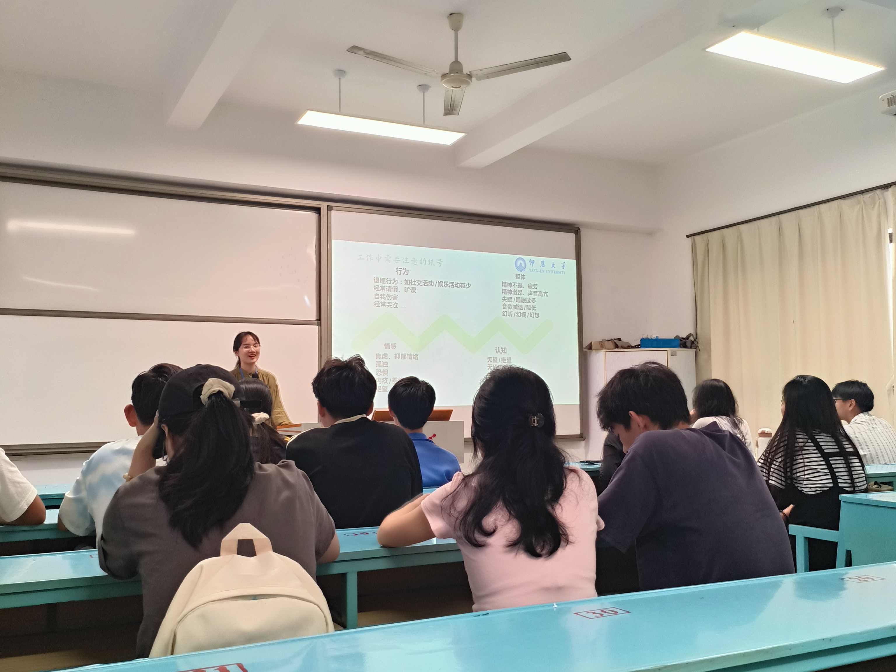 为提高学院心育工作水平,帮助班级心理委员明确工作职责,10月17日,beat365官方网站于共和楼207开展2024级班级心理委员培训会,由学院心理工作负责老师柯嘉雯主持开展,2024级新生班全体心理委员参加。