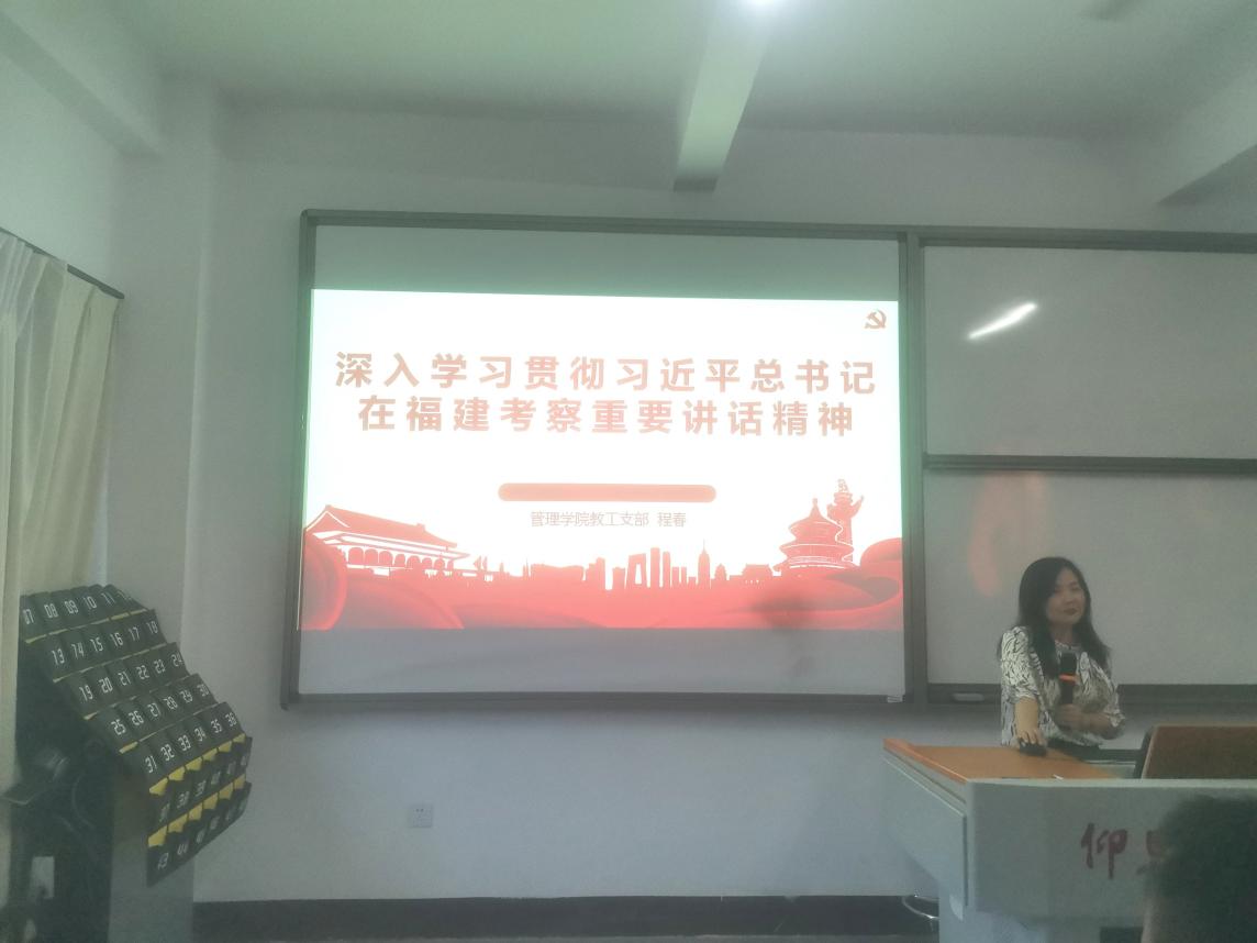 11月4日下午,beat365官方网站教工党支部组织召开专题学习会议,深入学习贯彻习近平总书记在福建考察时的重要讲话精神。会议由支部书记程春同志主持,全体教工党员参加了此次学习活动。