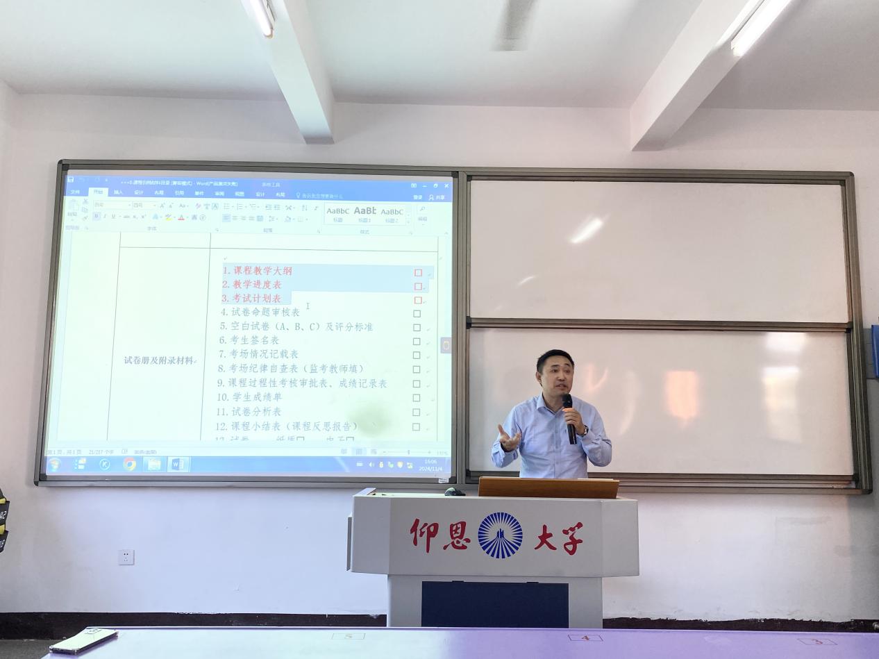 随后,副院长庄海刚详细解读了审核评估的相关标准和要求,对教学档案材料的整理工作进行了具体部署。他强调,教学档案是学院教学工作的重要记录,也是审核评估的重要依据。因此,在整理过程中,必须严格按照评估标准进行分类、归档,确保档案材料的完整性、准确性和规范性。同时,他还就档案材料的收集、整理、审核等各个环节提出了具体要求和操作规范。