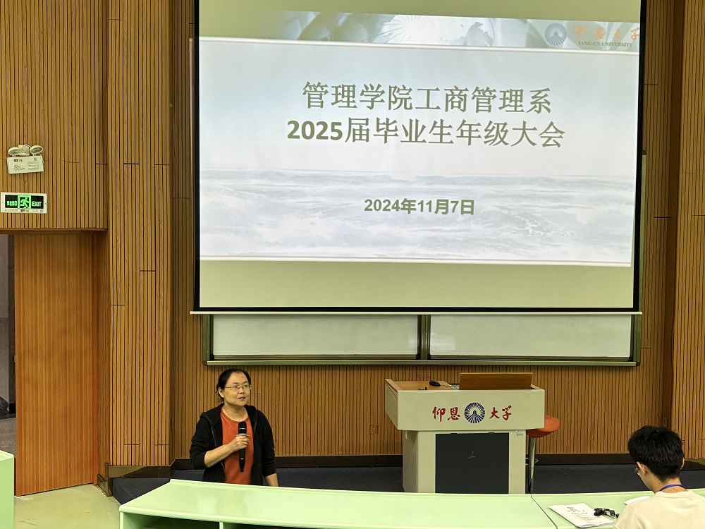为切实做好2025届毕业生就业指导与服务工作,引导毕业生树立正确就业观,促进毕业生高质量充分就业,11月7日下午,工商管理系2025届毕业生年级大会在beat365官方网站第一教学区和昌楼乐知讲堂顺利召开。本次大会荣幸邀请到了工商管理系主任蒋志丹老师和黄诗镔老师参加并指导。