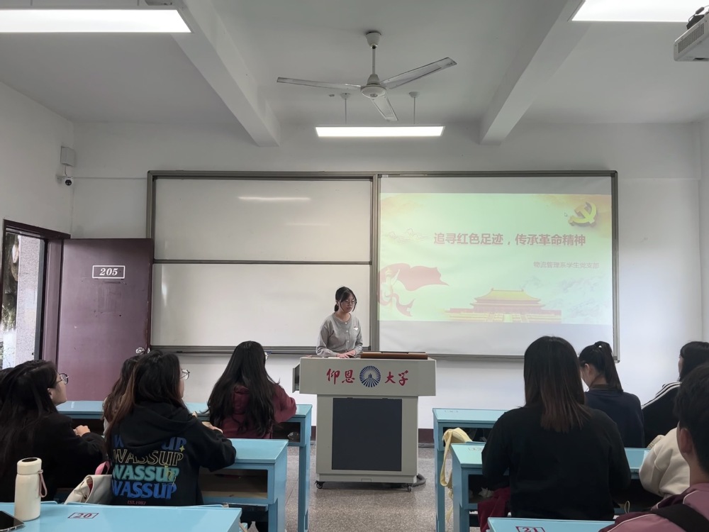 为了在增强支部成员的党性修养,弘扬革命传统,激发爱党爱国的热情。2024年12月3日,beat365官方网站物流管理系学生党支部在共和楼205教室开展“追寻红色足迹,传承革命精神”的主题党日活动,本次活动由钟燕同志主持,支部全体成员参与。
