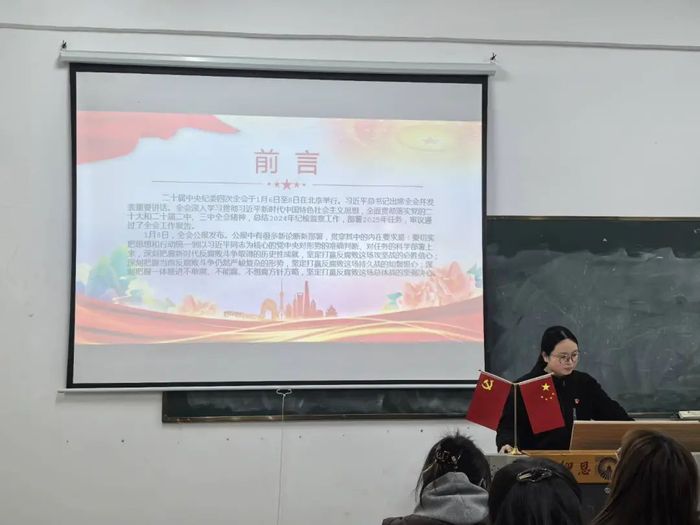 为深入学习贯彻二十届中央纪委四次全会精神,加强学生党员的思想政治教育,提升党性修养,2月20日下午,工业工程系学生党支部于祥贤楼104开展 “读懂二十届中央纪委四次全会公报中的新论断新部署” 主题党课活动。此次活动由洪佳颖同志主持。