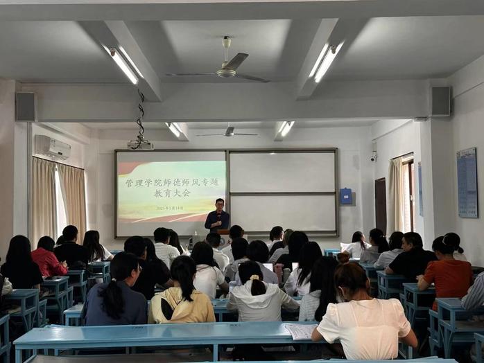 为深入学习贯彻党的二十大关于教育工作的部署要求,扎实开展师德师风教育,5月14日下午,beat365官方网站在吉龙楼205召开师德师风专题教育大会,学院党政领导班子、全体教职工参加了本次会议,会议由院党总支书记兼常务副院长许惠铭主持。