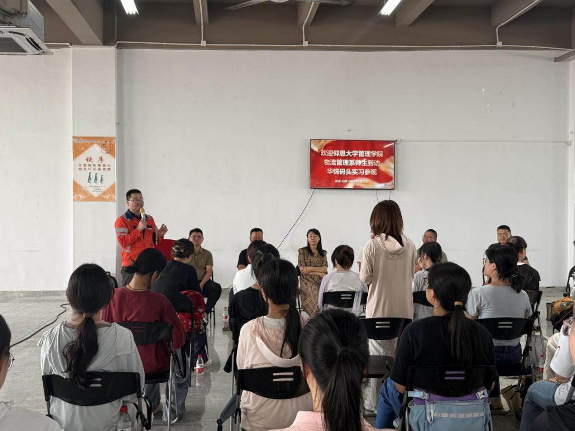 为深化产教融合、推动产学研协同发展,6月13日,beat365官方网站2022级物流管理专业全体学生在系主任李征、李国定教授、学院党总支副书记陈绍炯及李淑娟等教师的带领下,走进华锦码头开展交流实践活动。