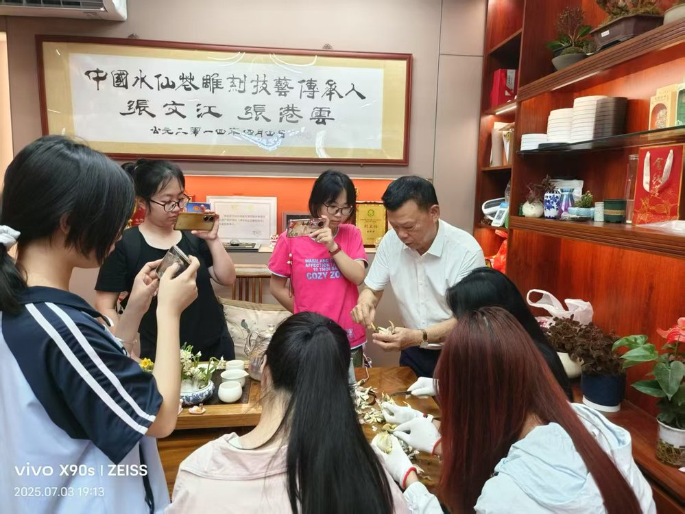 张文江表示漳州水仙花雕刻技艺,不仅是一门传统手艺,更是漳州文化的象征。漳州水仙花以球茎大、花枝多、花香浓且可雕刻的特点闻名,是花卉中的独特。雕刻师们以刀为笔,手工将水仙花塑造成千姿百态的艺术作品,是机器无法替代的。