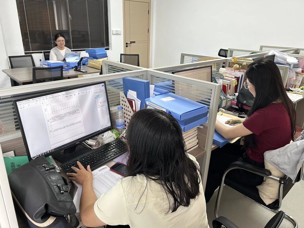 各系采用“分组攻坚+集中会诊+专项整改”的工作模式,认真负责、积极推进各项检查、整改工作。在“教师个人自查—各系复查—教学督导检查—学院抽查”四级审核机制中,教师们率先开展“地毯式自查”,逐一核对教学目标与大纲的匹配度、教学方法与学情的契合度,教师主动向经验丰富的教授请教,力求材料无疏漏。在迎接审核评估的关键阶段,学院全体教师以高度的责任感与使命感,全身心投入材料整改工作,用实际行动诠释着教育工作者的担当与热忱。