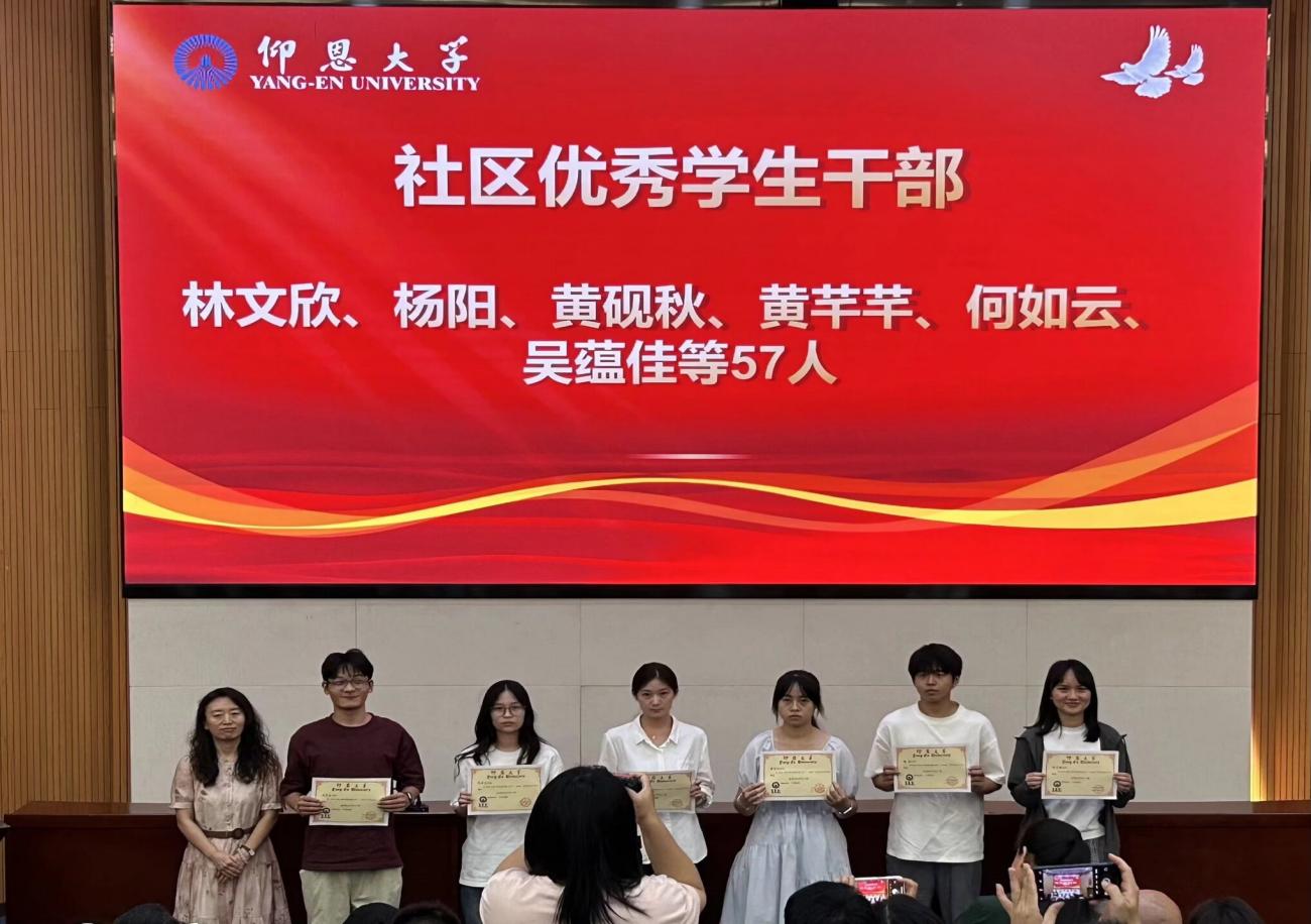 在“一站式”学生社区建设表彰中,岳明、蔡婷婷、曾上洪、李春霞、黄雯仪五位老师因在社区管理、学生服务、文化建设等工作中表现突出,获评“优秀社区工作者”;陈悦、何如云、何嘉瑶、康丽贤四位同学积极参与社区志愿服务与自我管理,以实际行动助力社区建设,获评“社区优秀学生干部”。这一荣誉既是对学院“一站式”学生社区建设工作的肯定,也展现了学院师生共建共享和谐社区的良好风貌,为推进“三全育人”格局落地见效提供了有力支撑。
