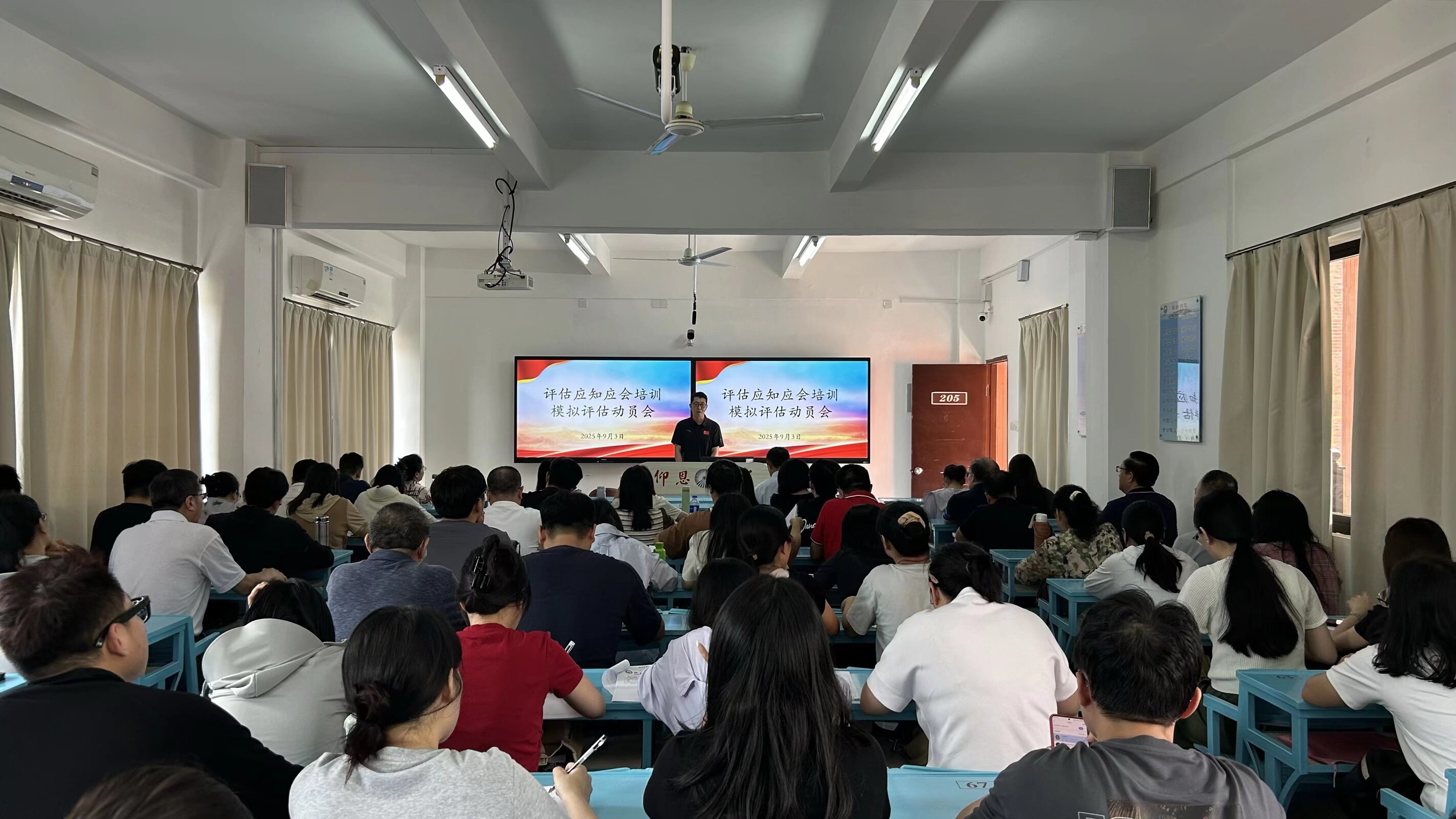 教学工作作为迎评核心内容之一,庄海刚副院长在会上作出重点安排。他要求全体教师认真学习教职工版应知应会手册,全面掌握评估相关知识与要求,确保在评估过程中展现良好专业素养。此外,9月3日-4日将开展模拟评估动员工作,涵盖教学档案材料线上模拟调阅、线上听课看课模拟演练等关键环节,旨在通过实战化模拟,及时发现问题、整改优化,为正式评估做好充分准备。