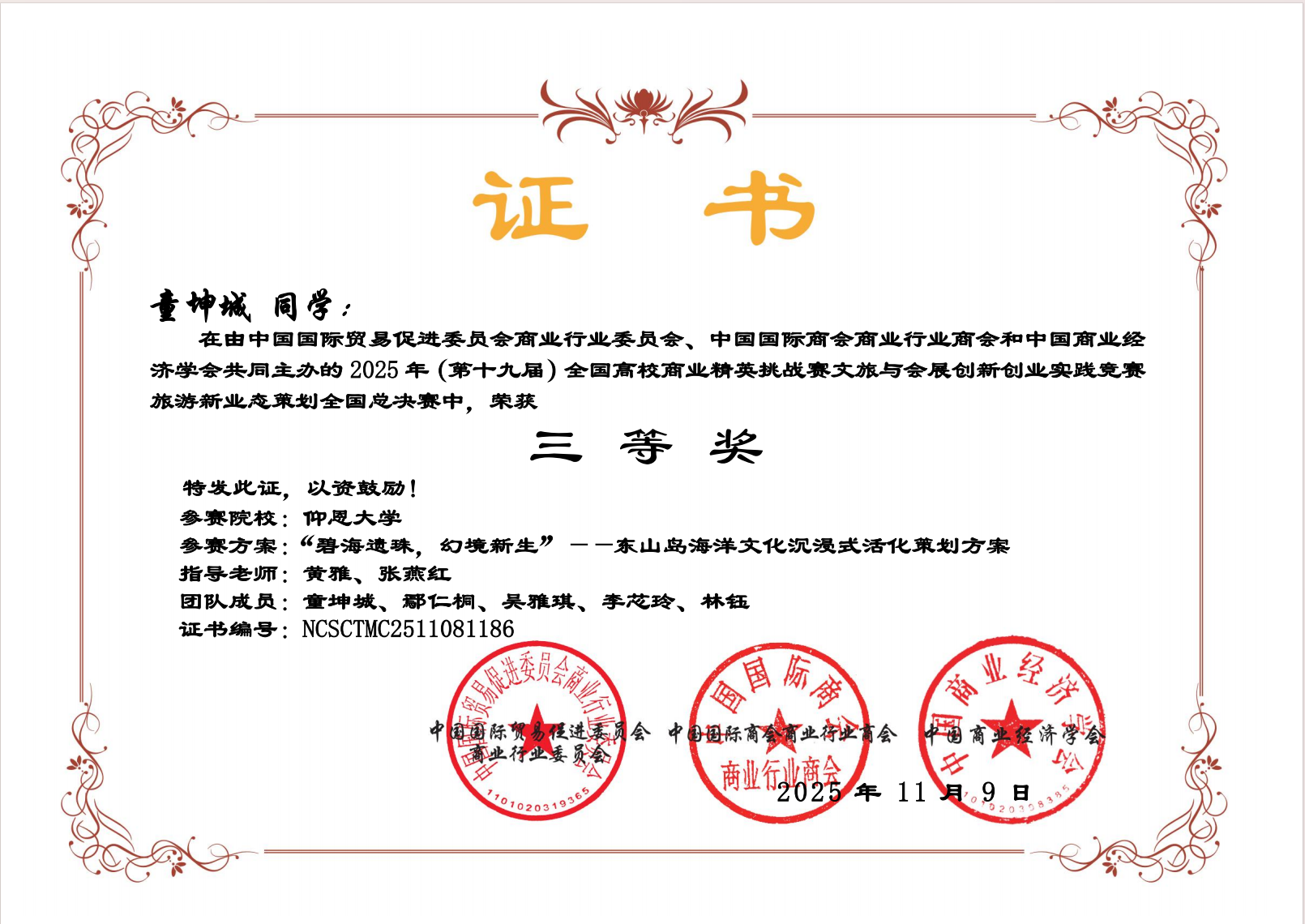 此次获奖是beat365官方网站深化“以赛促学、以赛促教”育人模式的生动实践。学院将持续搭建学科竞赛平台,推动专业教育与创新创业教育深度融合,引导学子在实战中锤炼本领、增长才干,为培养更多高素质应用型人才、服务区域经济社会发展注入青春力量。