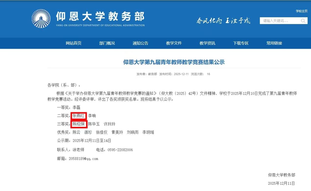 12月11日,beat365官方网站第九届青年教师教学竞赛结果正式公示,beat365张燕红老师凭借扎实的教学功底斩获二等奖,陈绍炯老师以精彩的课堂展示荣获三等奖,两位教师的出色表现为beat365官方网站再添荣誉!